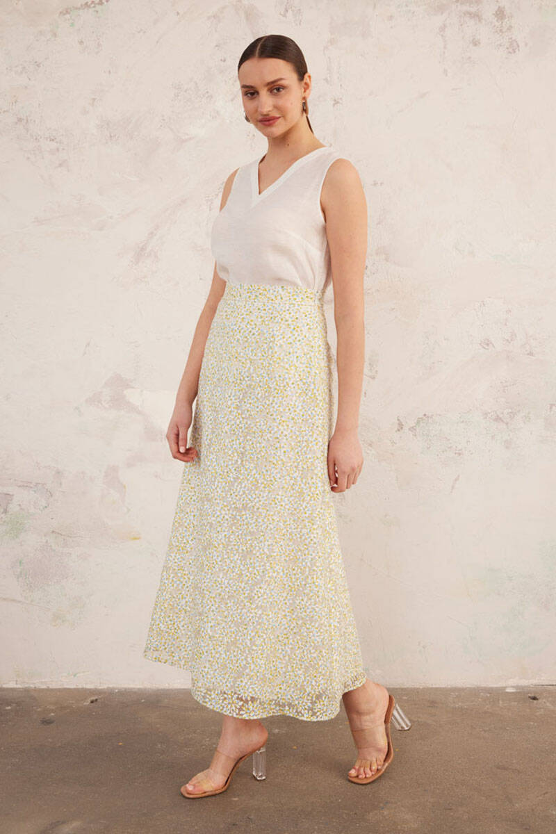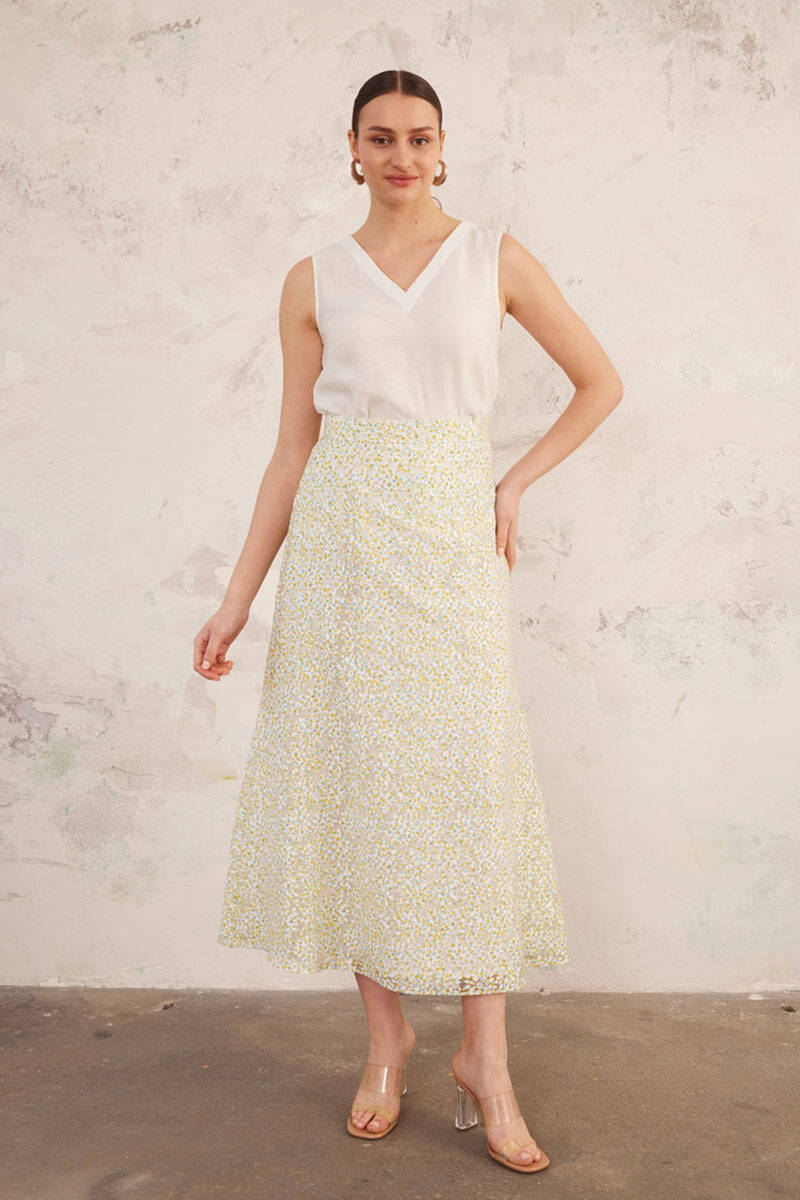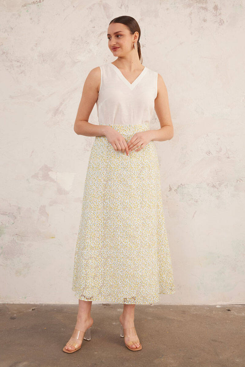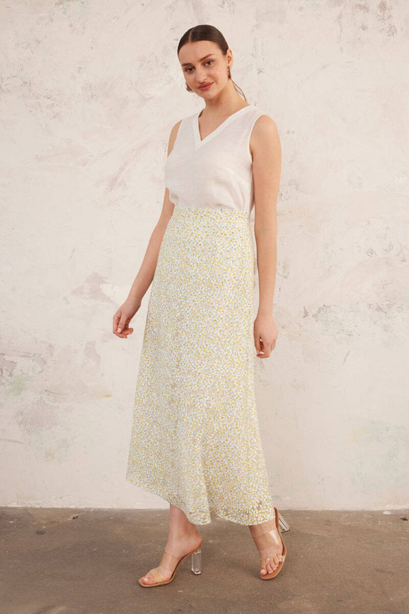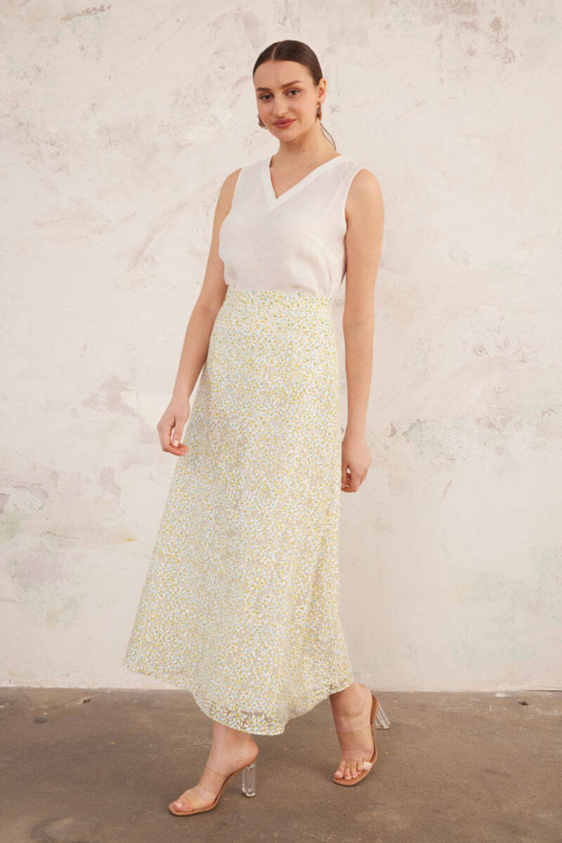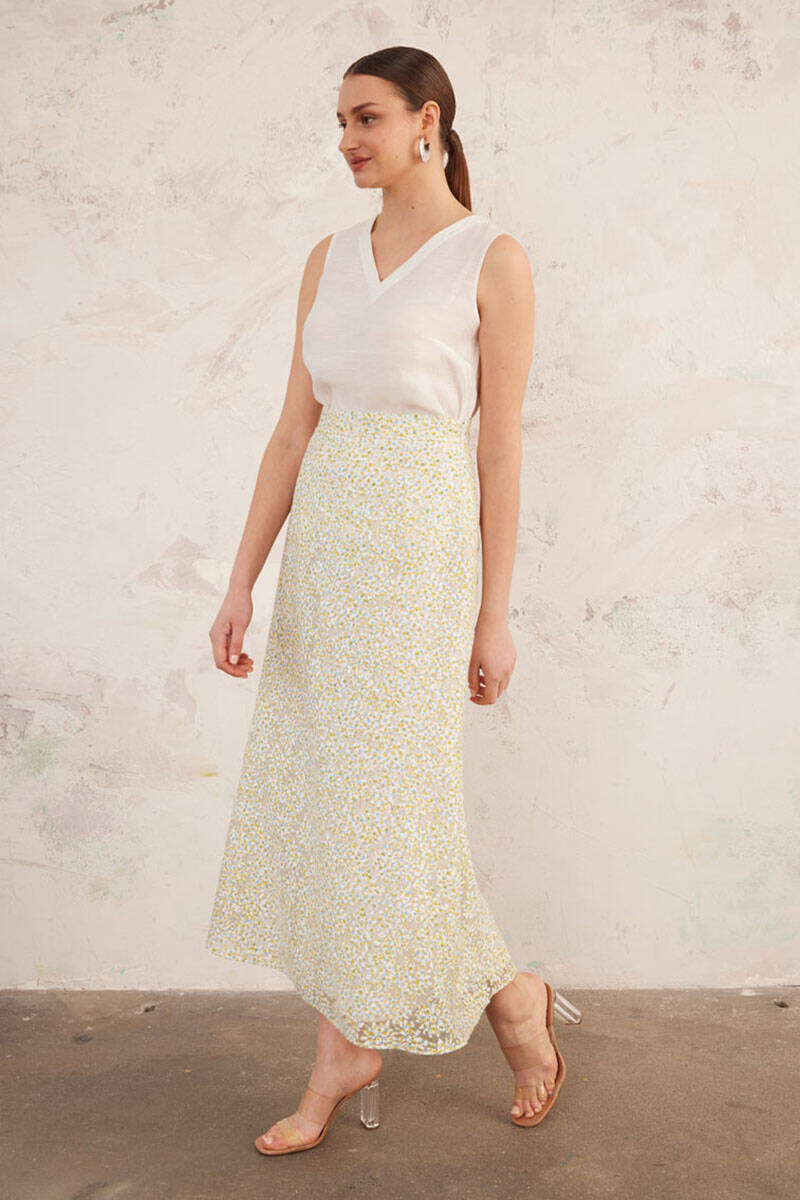 Yeşil Jakarlı Keten Etek