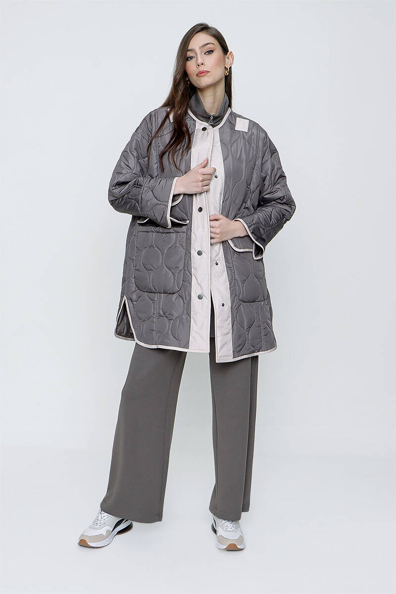Gri 5829111 Yaka Detaylı Kapitone Kısa Mont