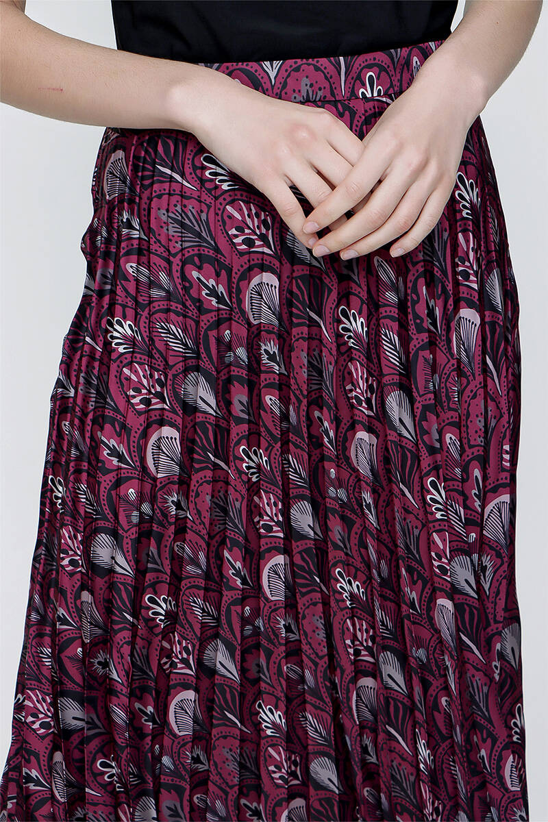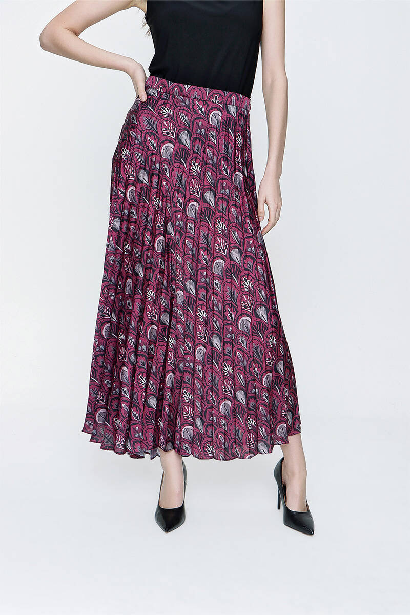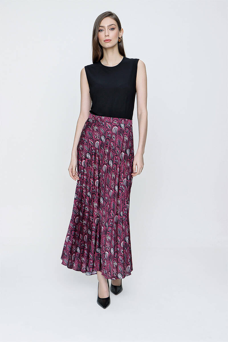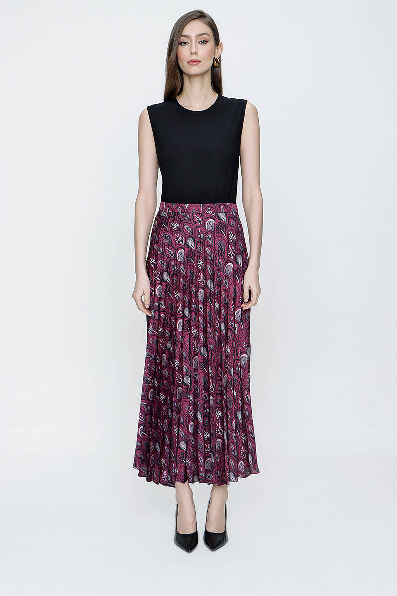 Ekru 1178111 Beli Kemerli Desenli Kumaş Pileli Etek