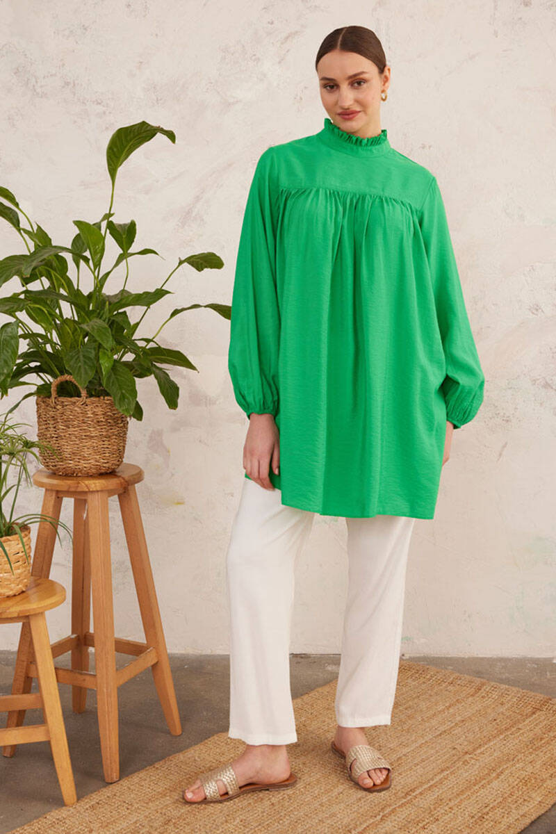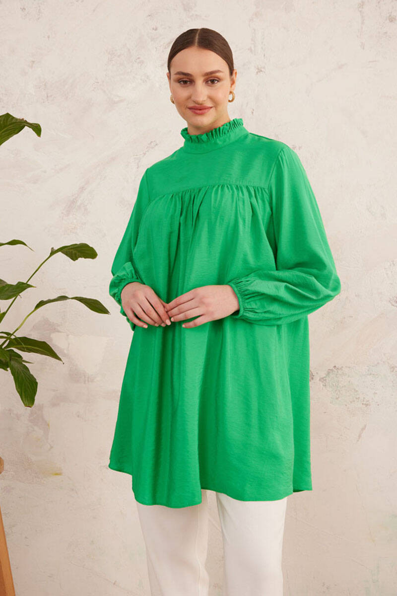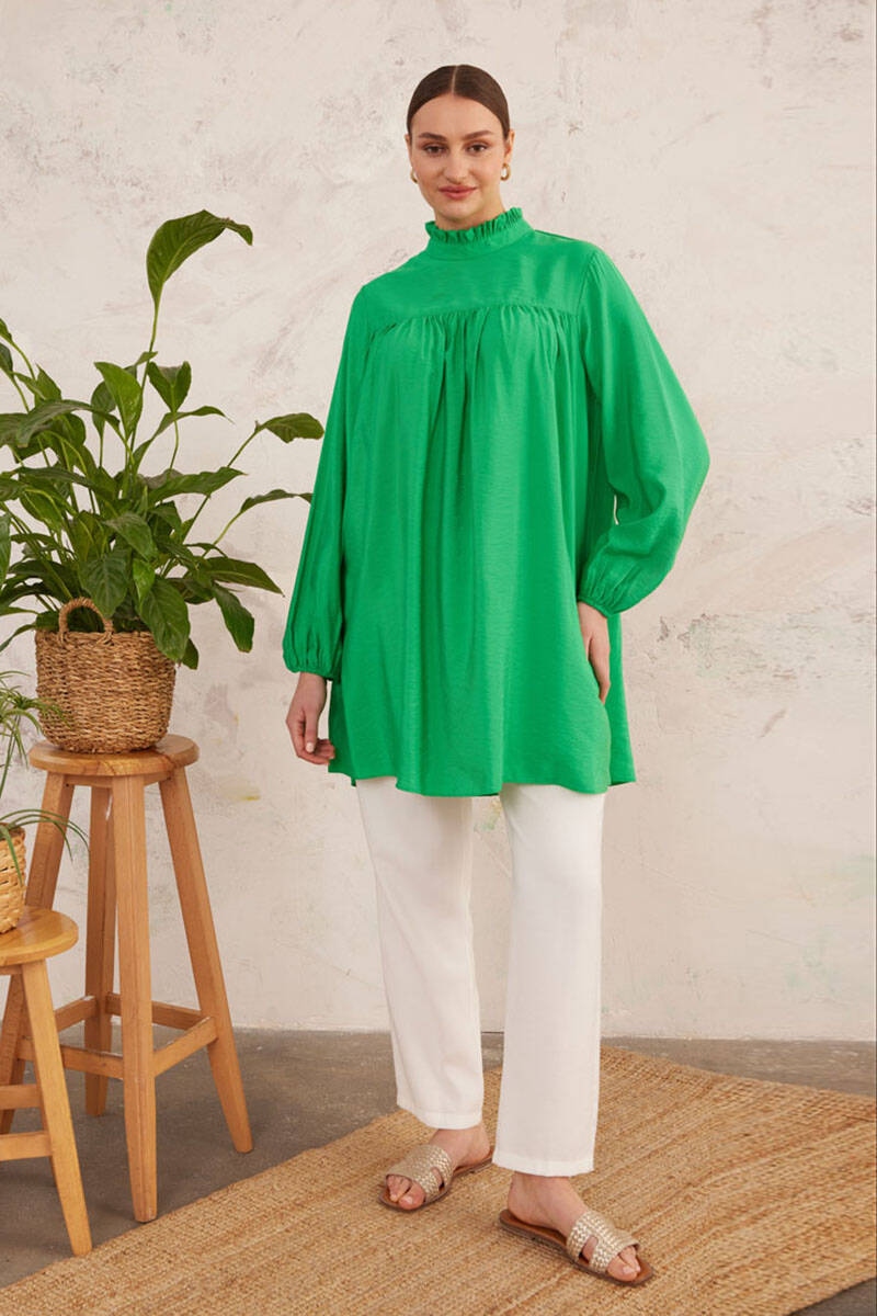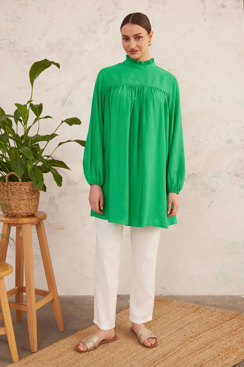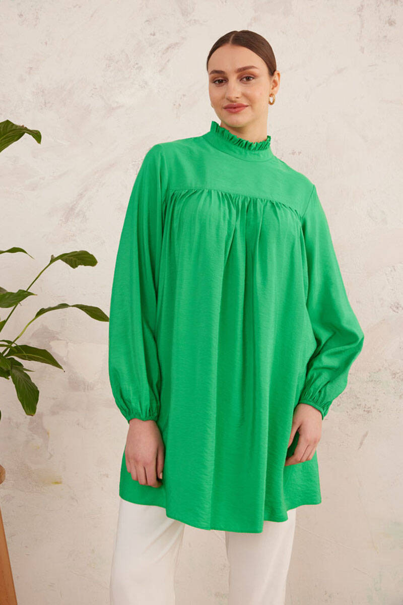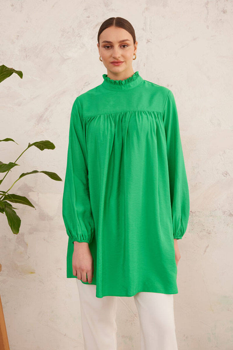 Yeşil Yakası Fırfırlı Robalı Tunik
