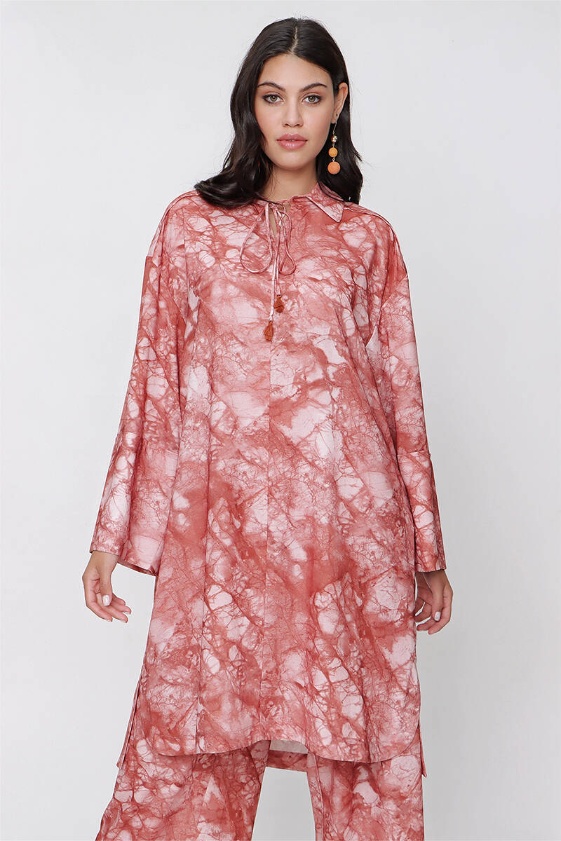 Ekru İşleme Detaylı Hakim Yaka Tunik