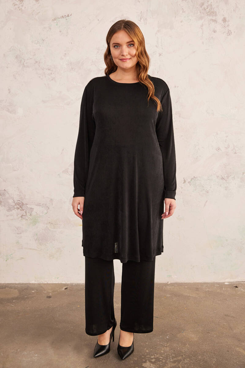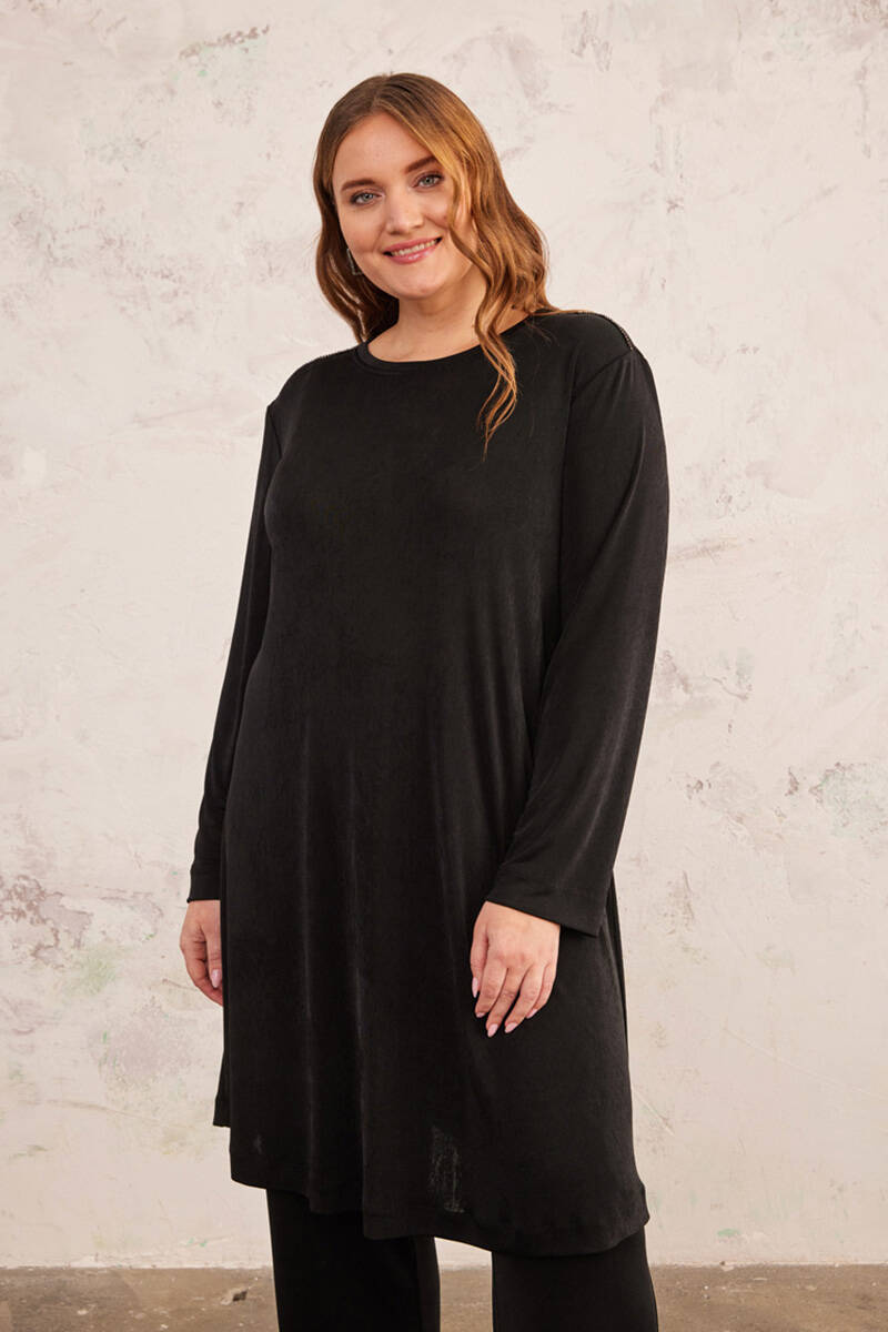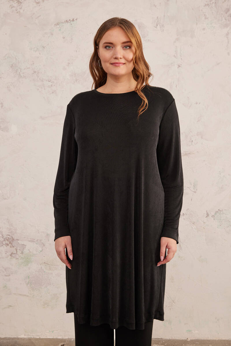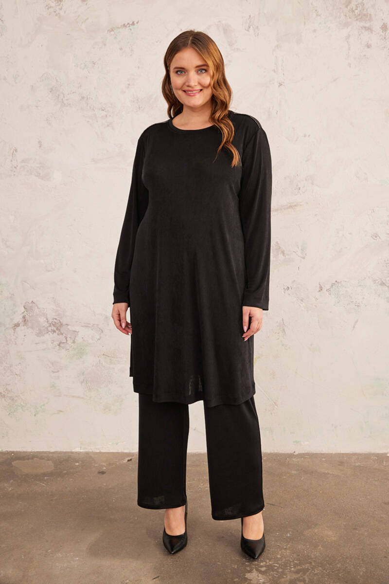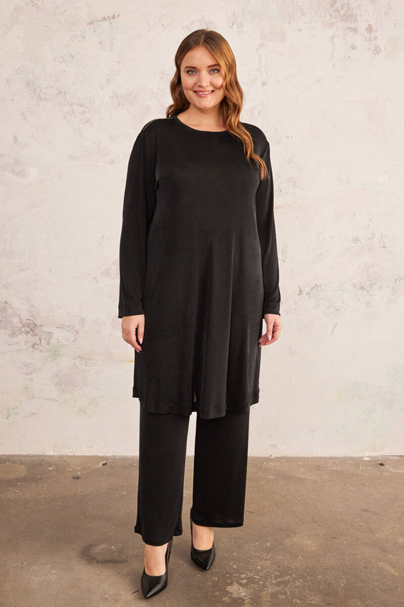 Siyah Omuzları Zincir Detaylı Örme Tunik
