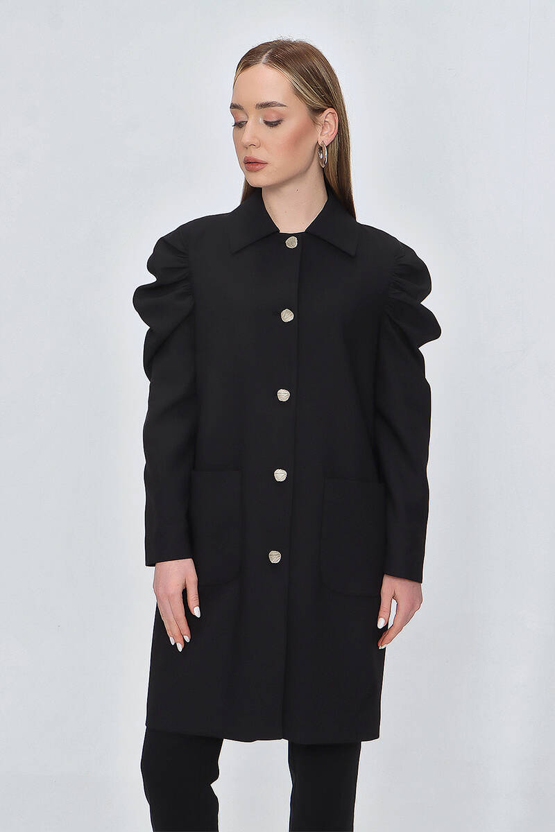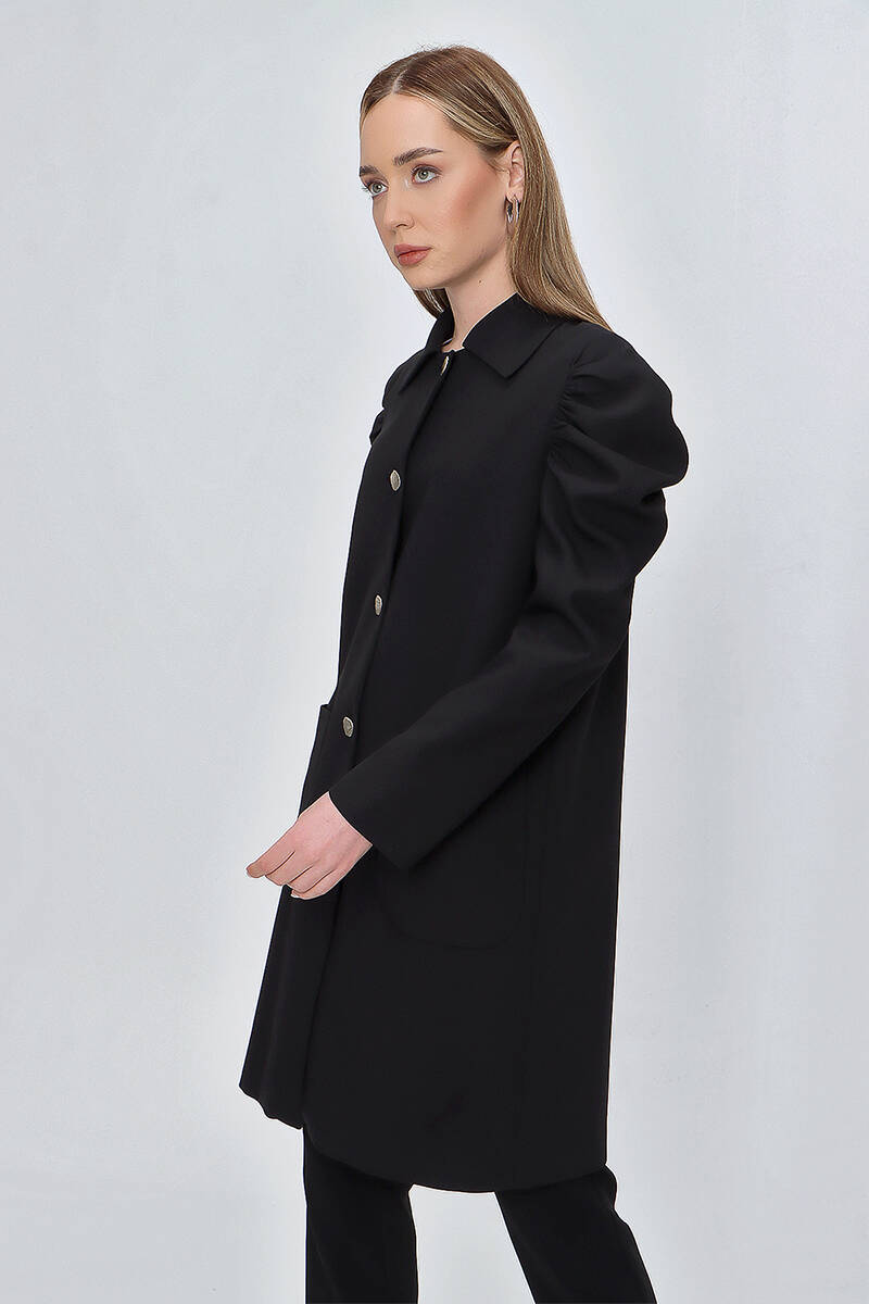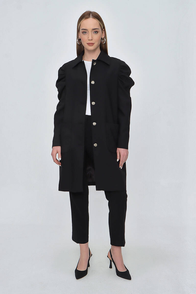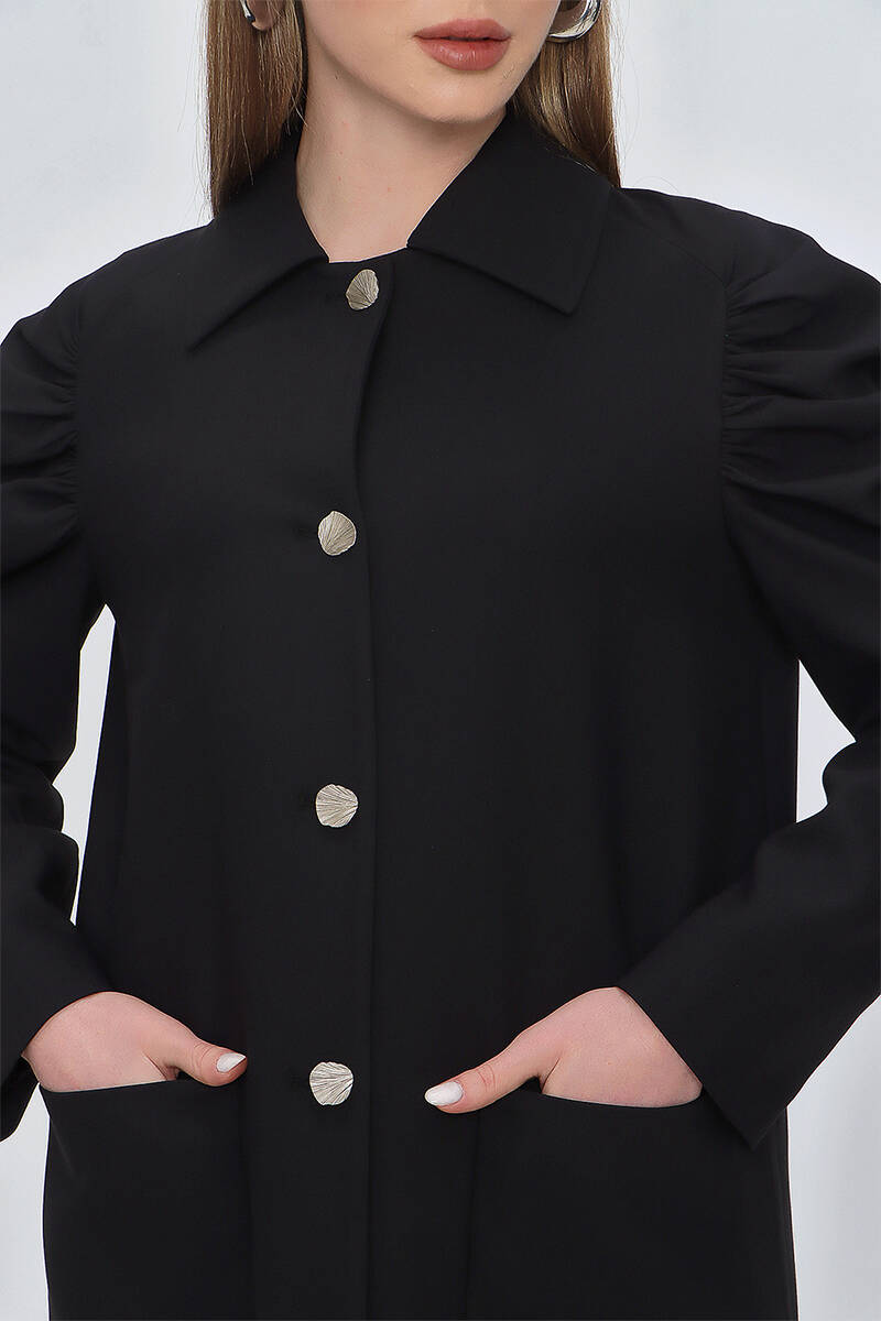 Siyah Omuzları Büzgülü Cep Detaylı Kap