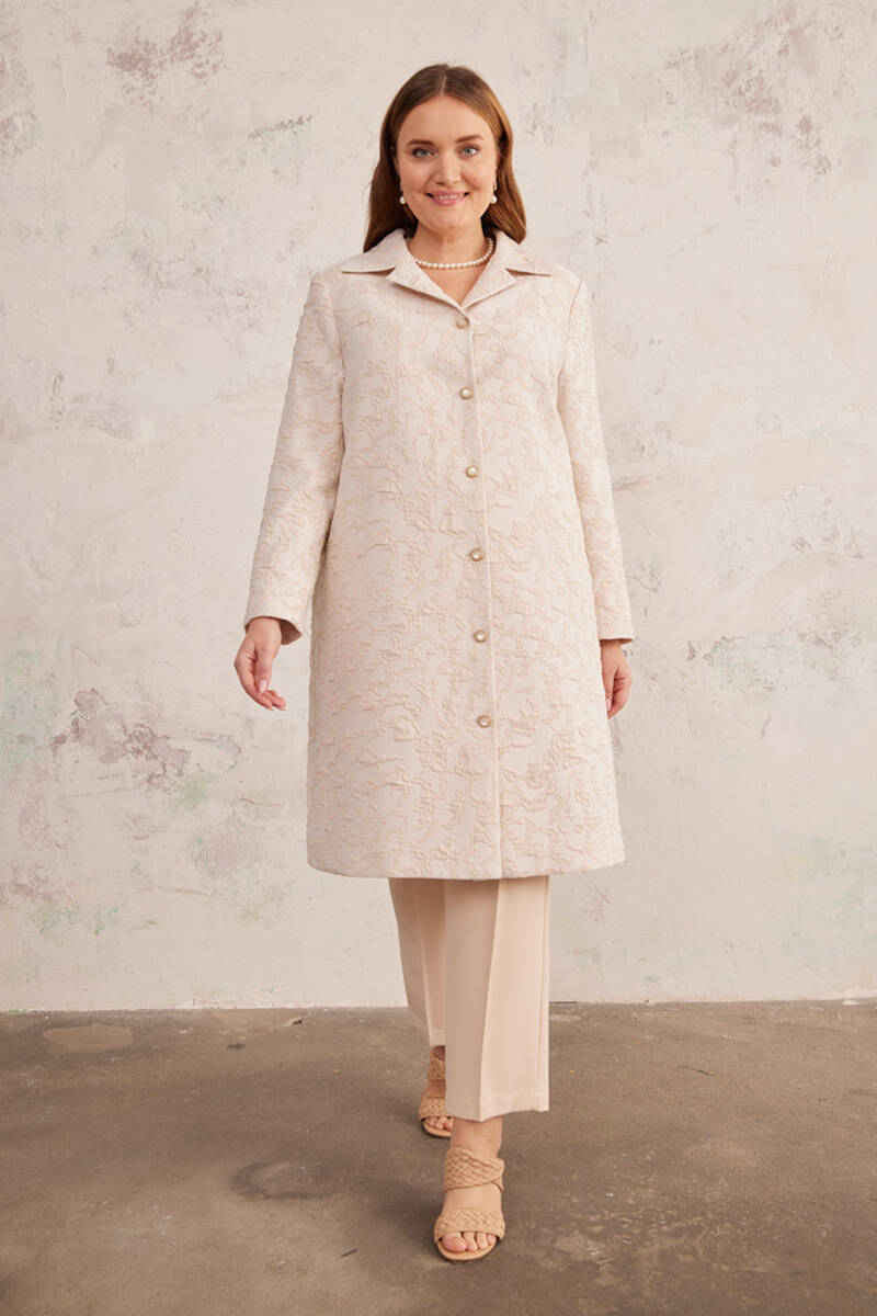 Ekru Güpür Abiye Kap