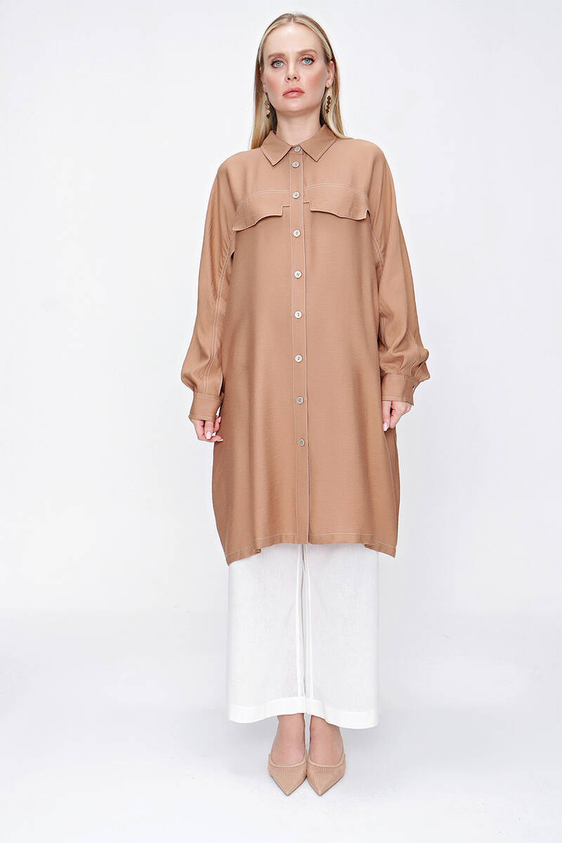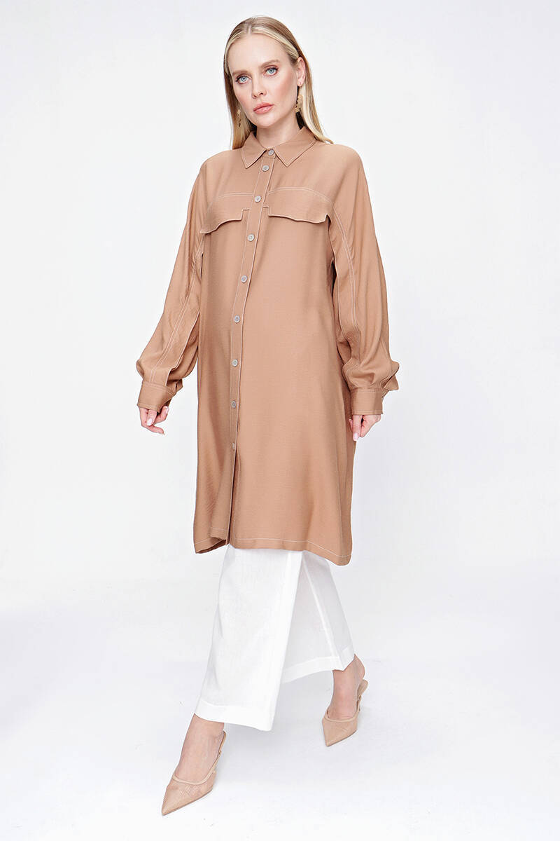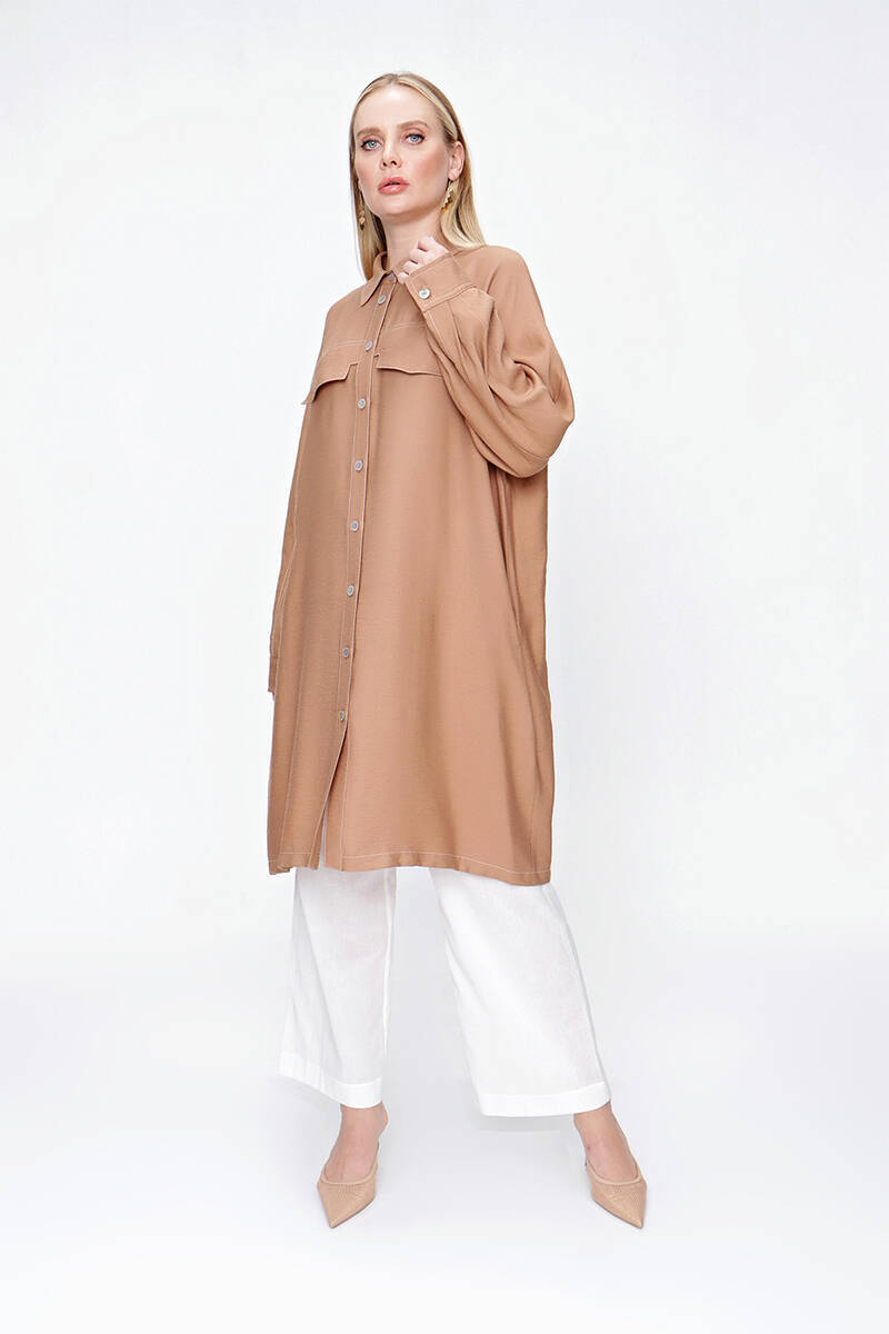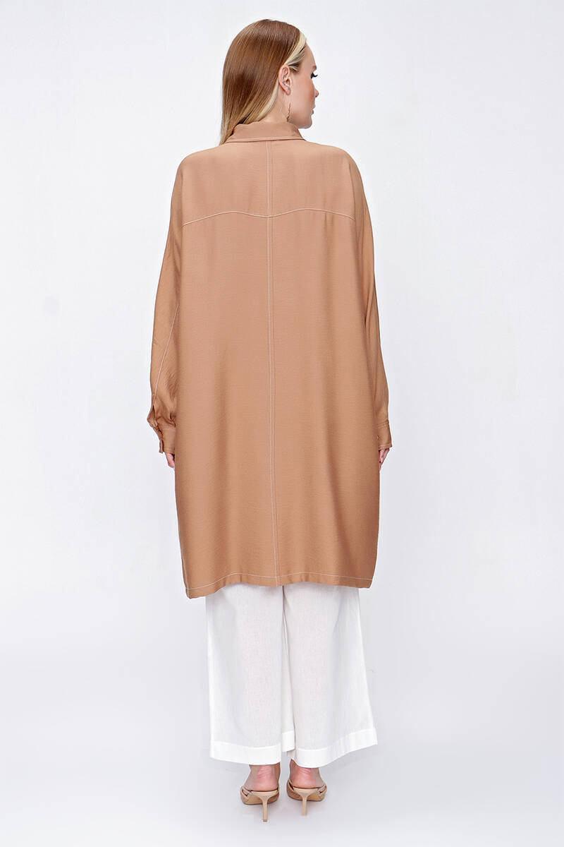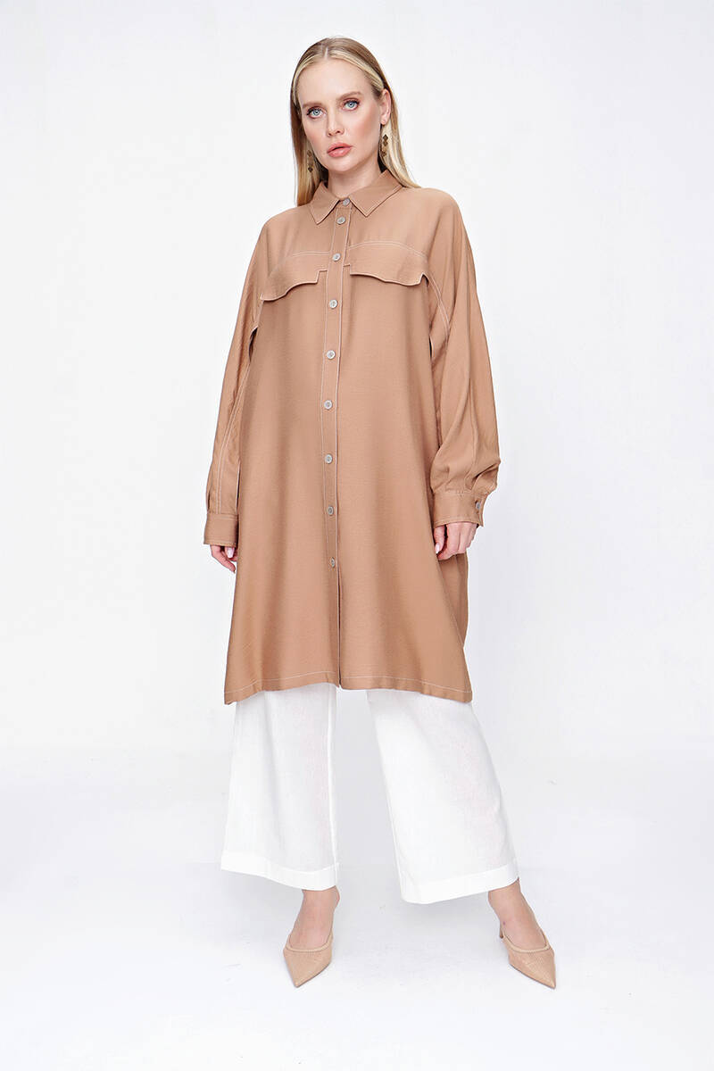 Camel Kontrast Dikiş Detaylı Rahat Kesim Kap