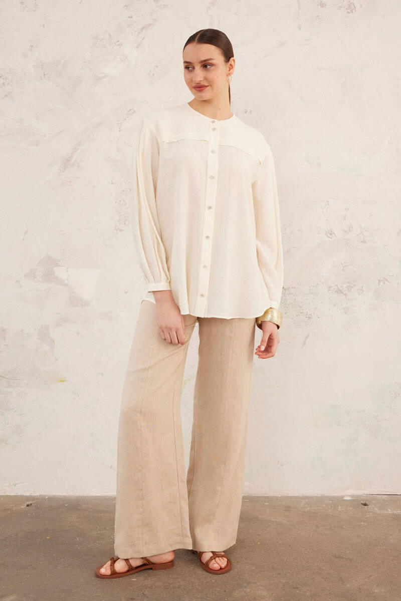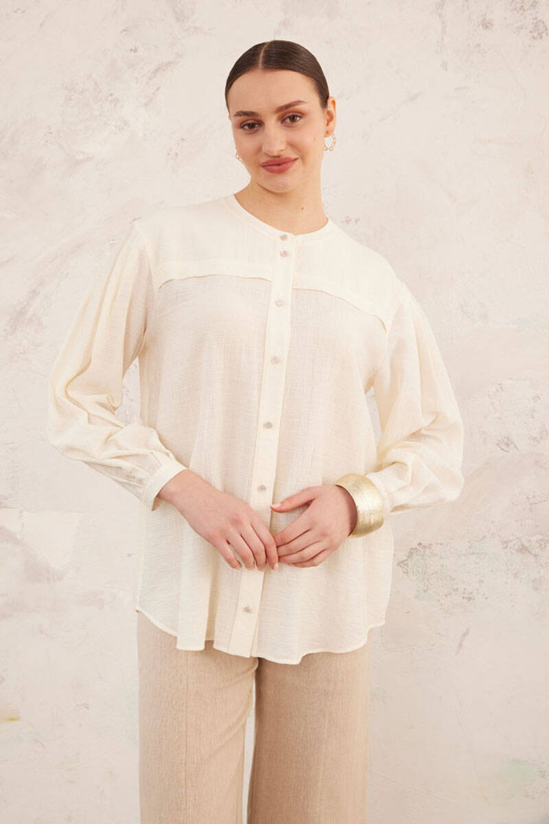 Ekru Hakim Yaka Bluz