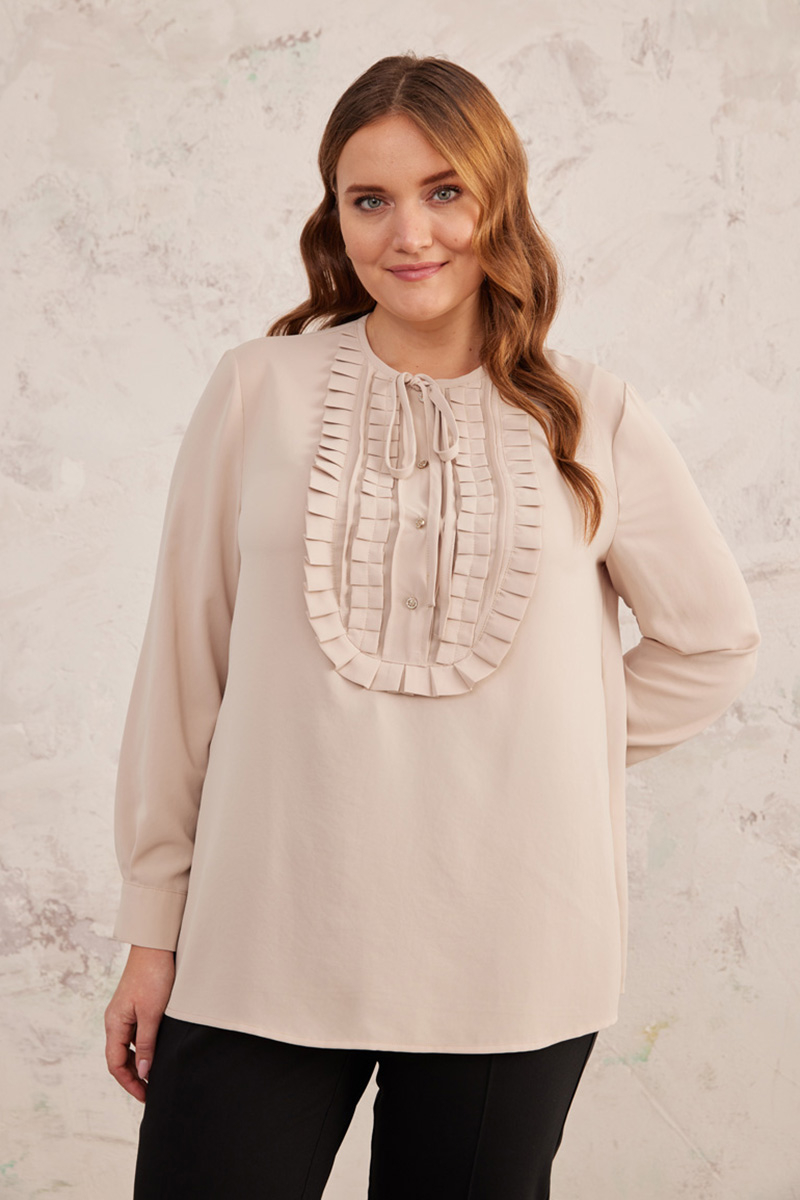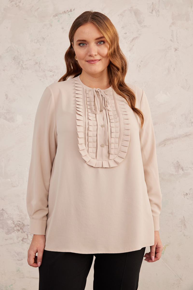 Antrasit Yaka İşlemeli Çizgili Bluz