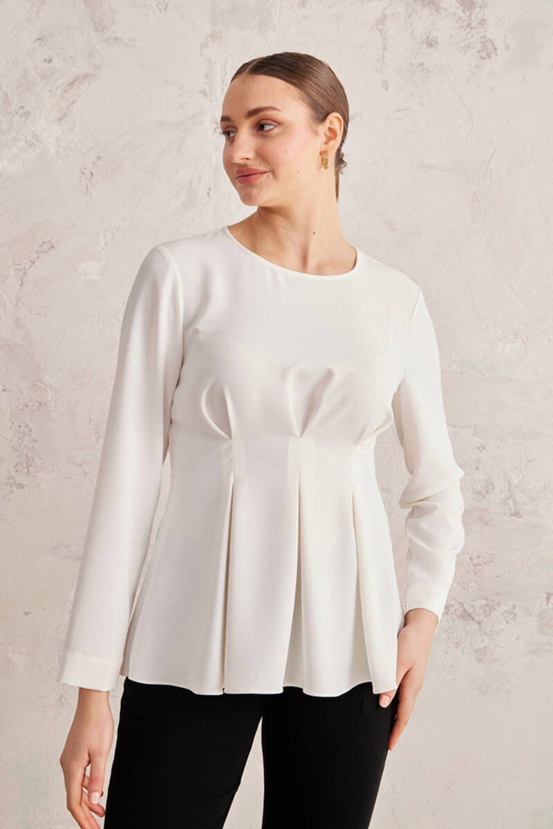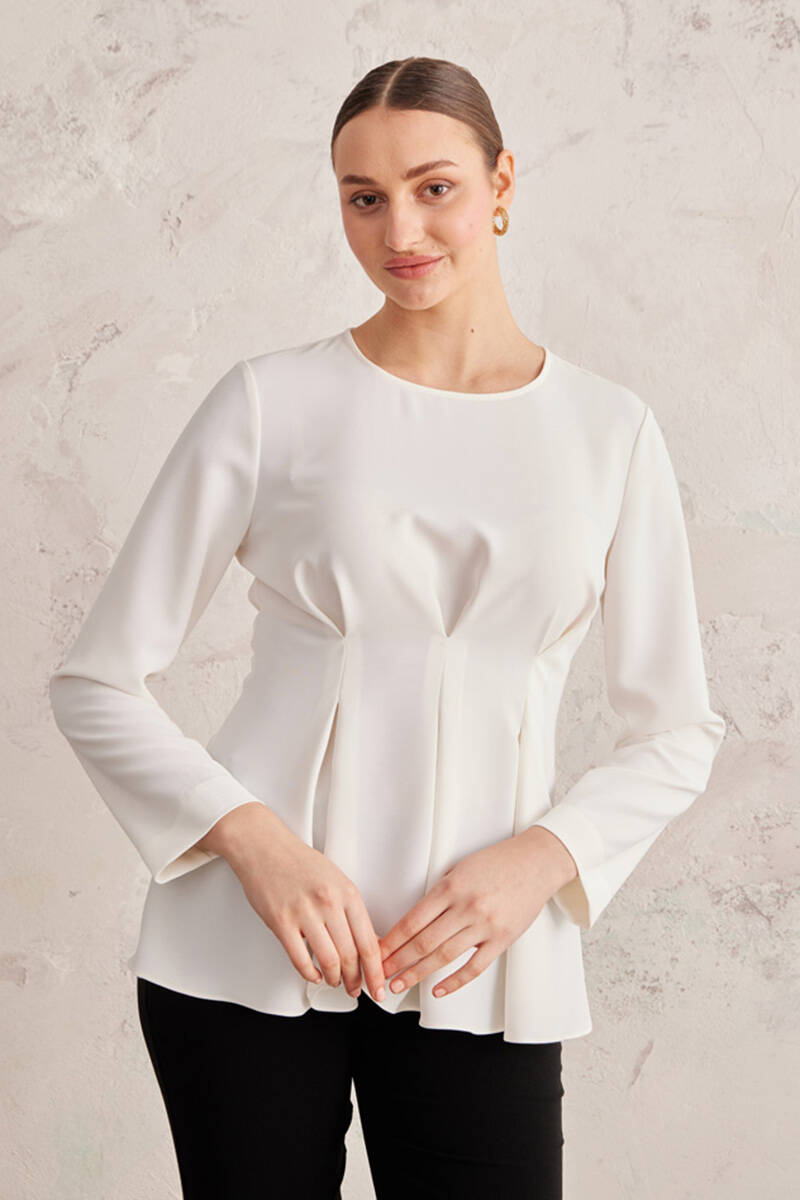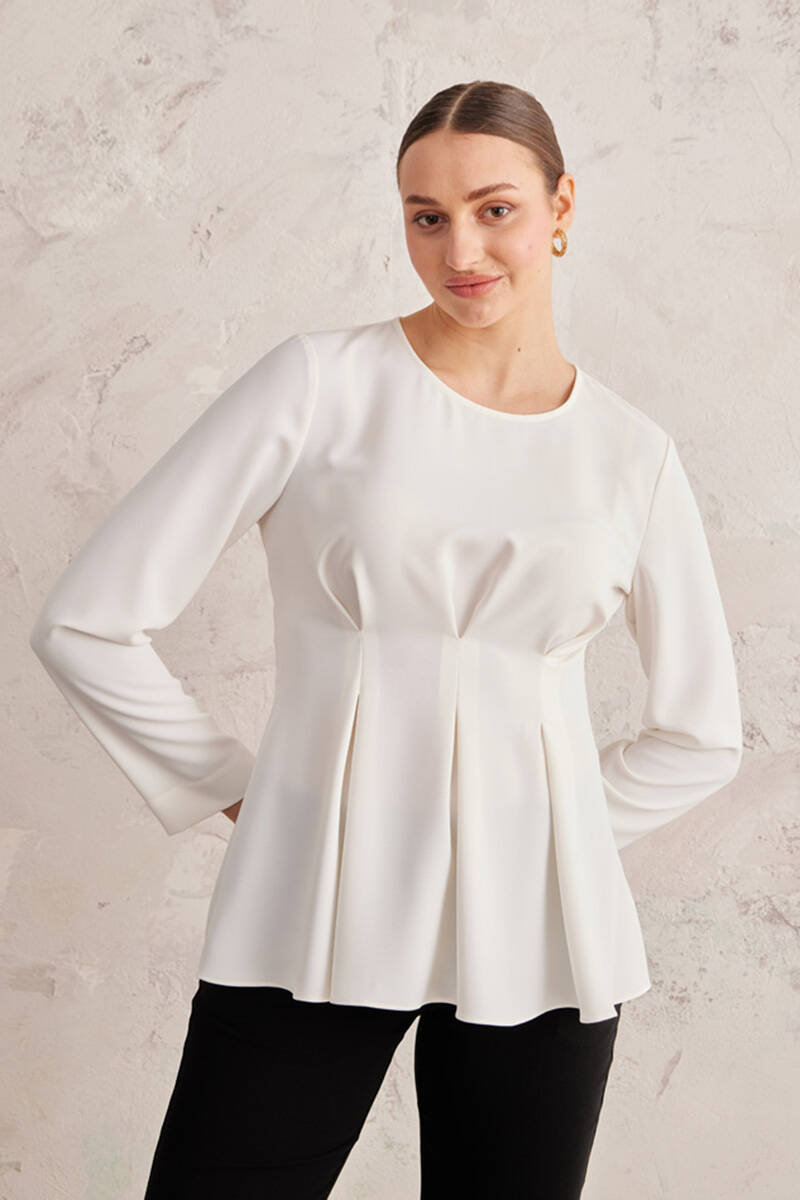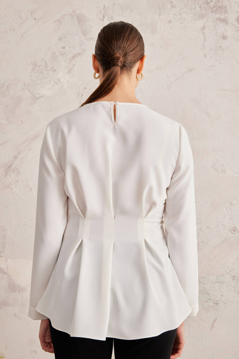 Antrasit Yaka İşlemeli Çizgili Bluz