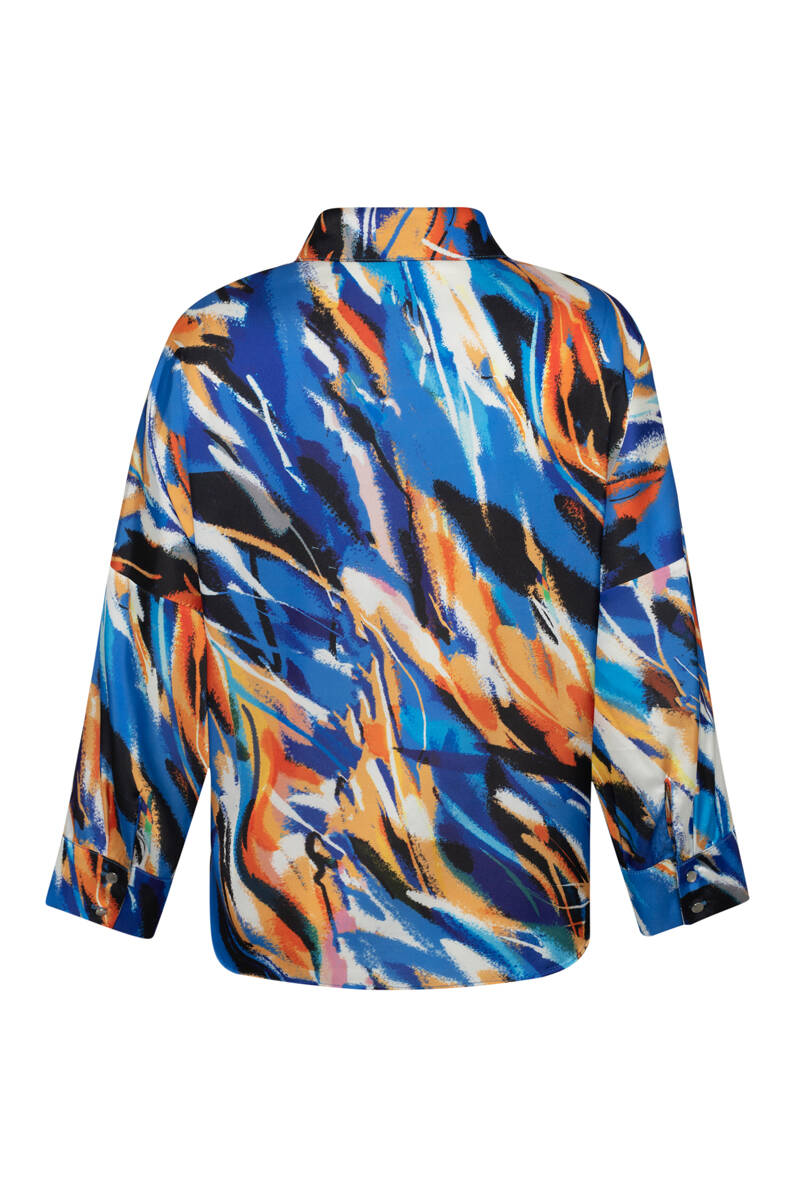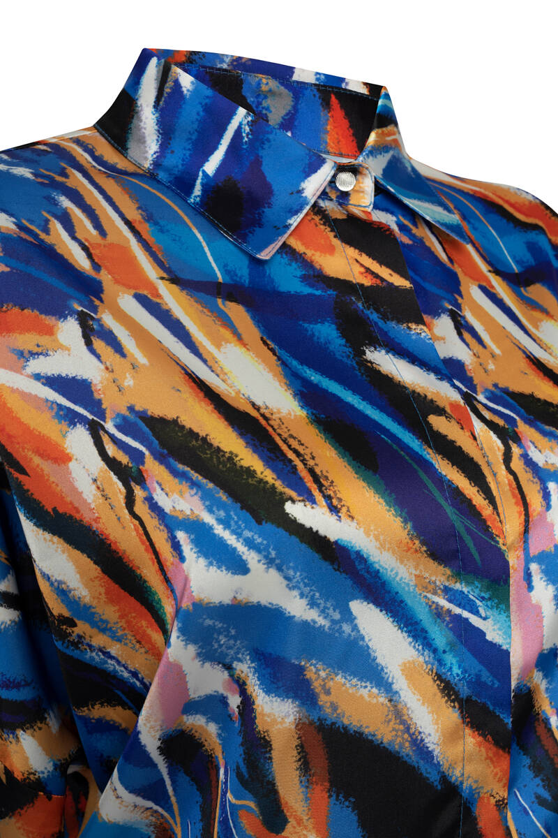 Saks Desenli Kısa Bluz