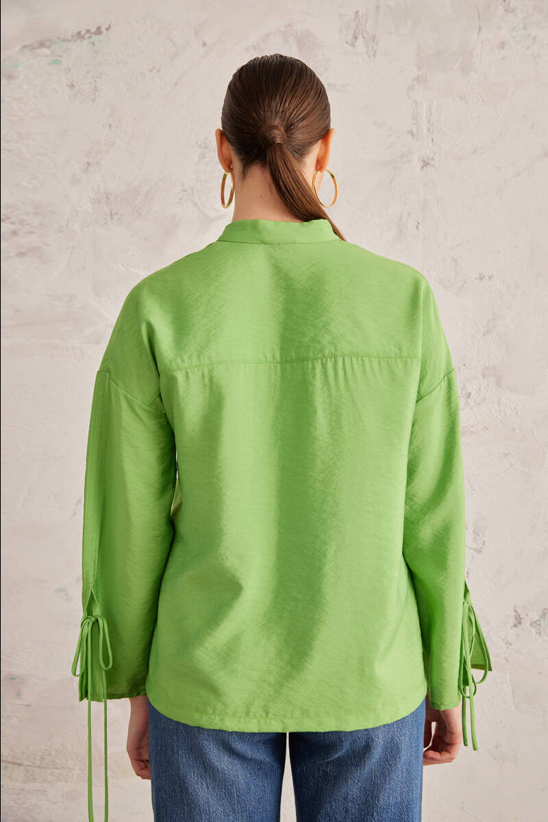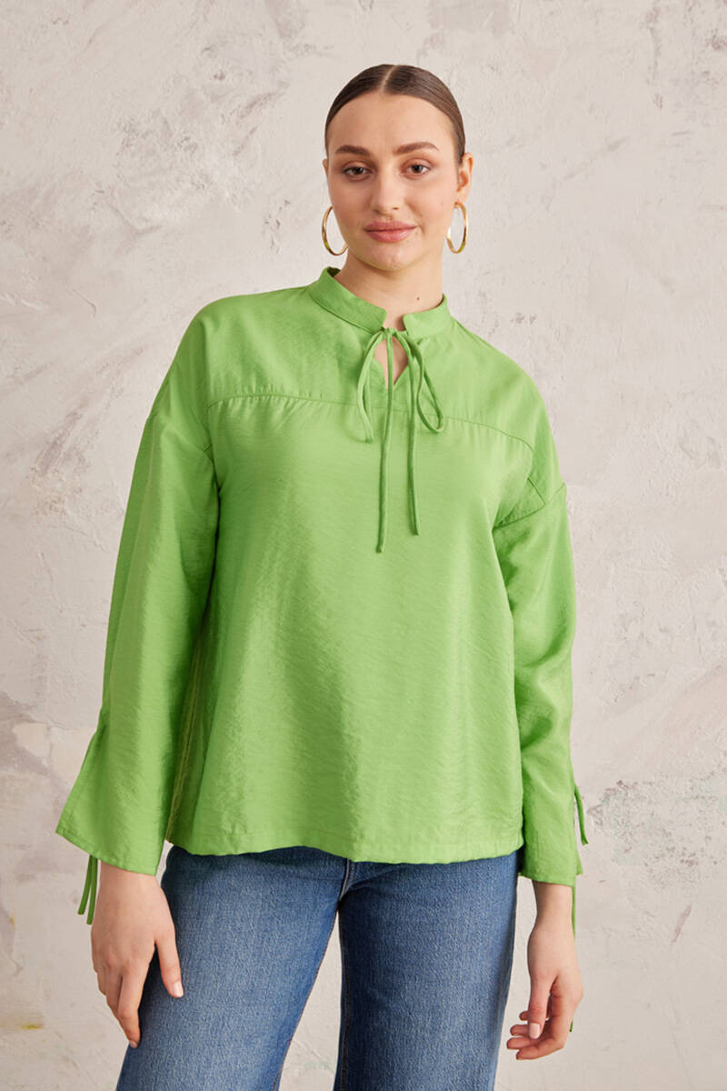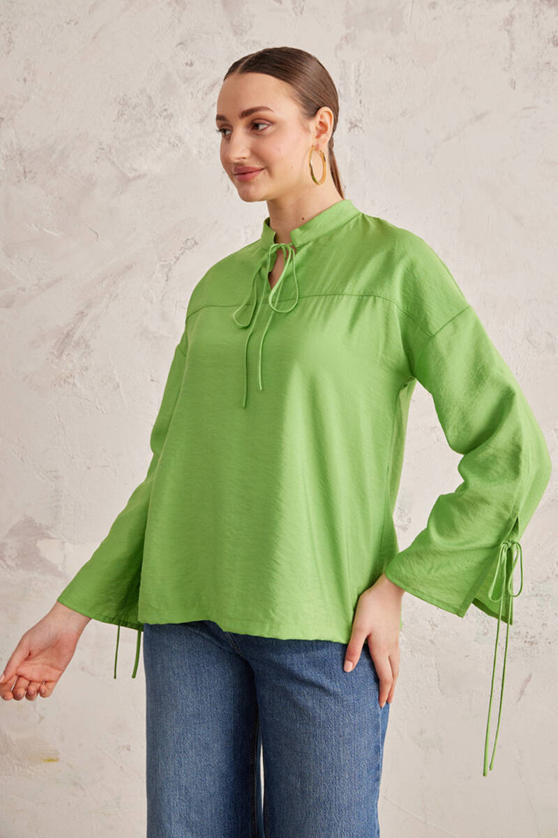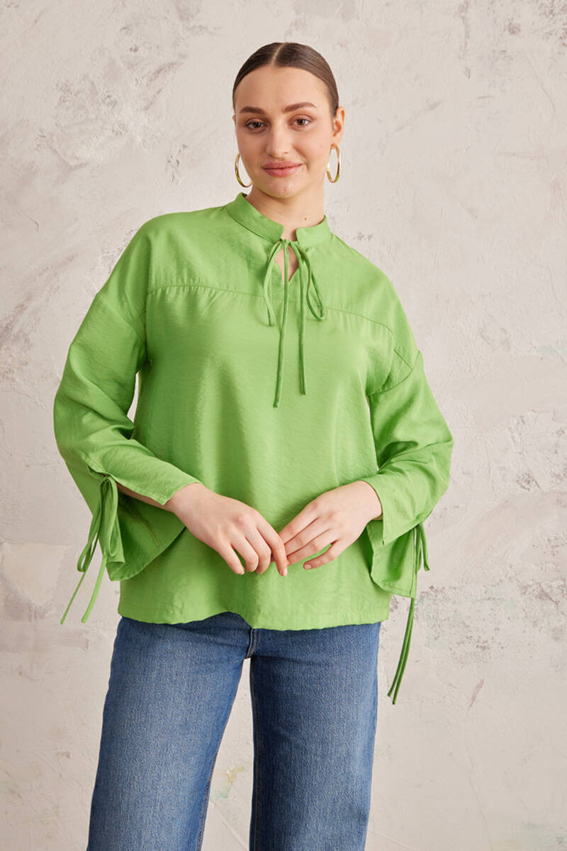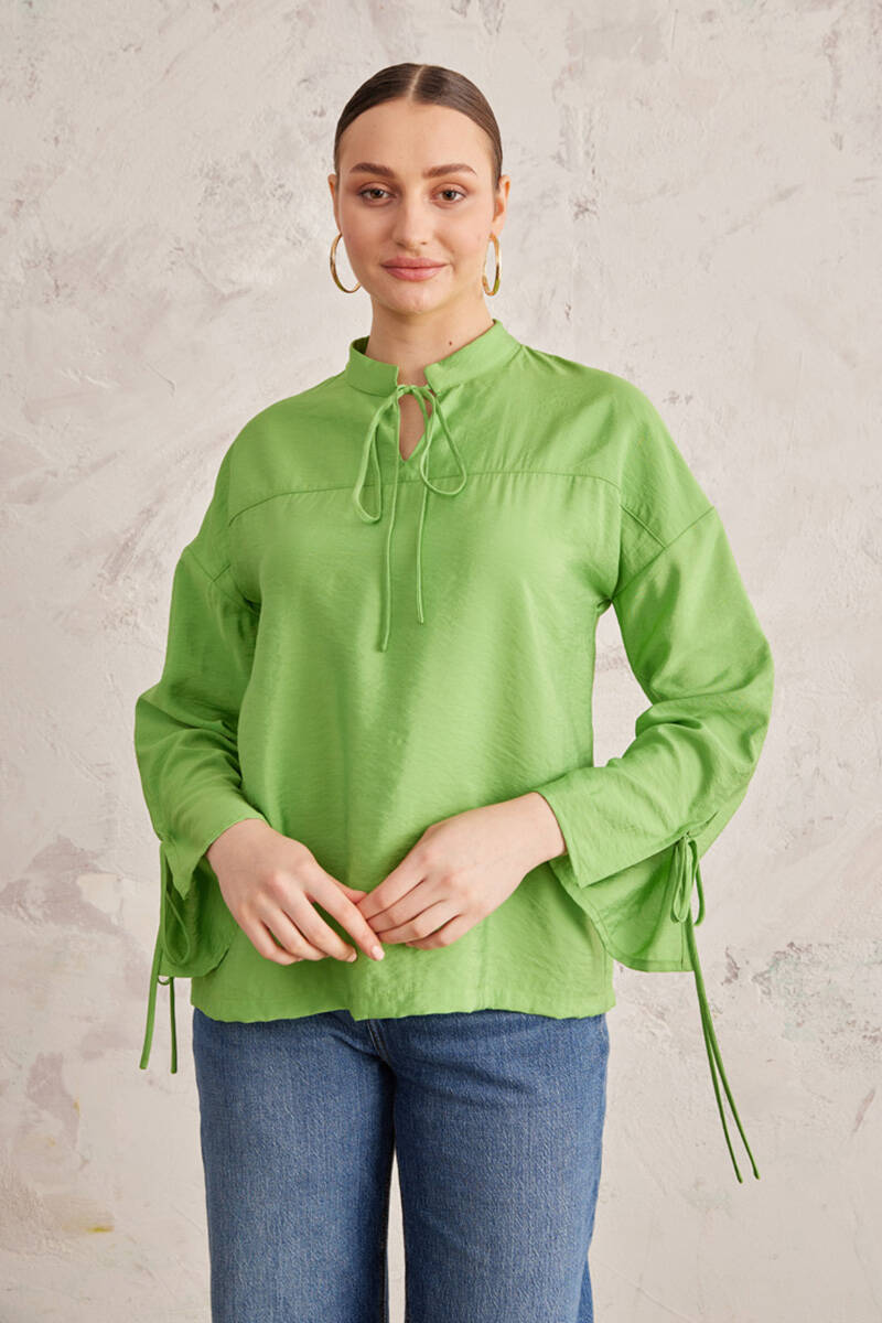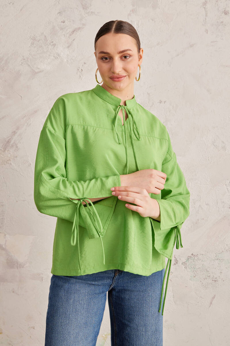 Yeşil Bağcık Detaylı Bluz