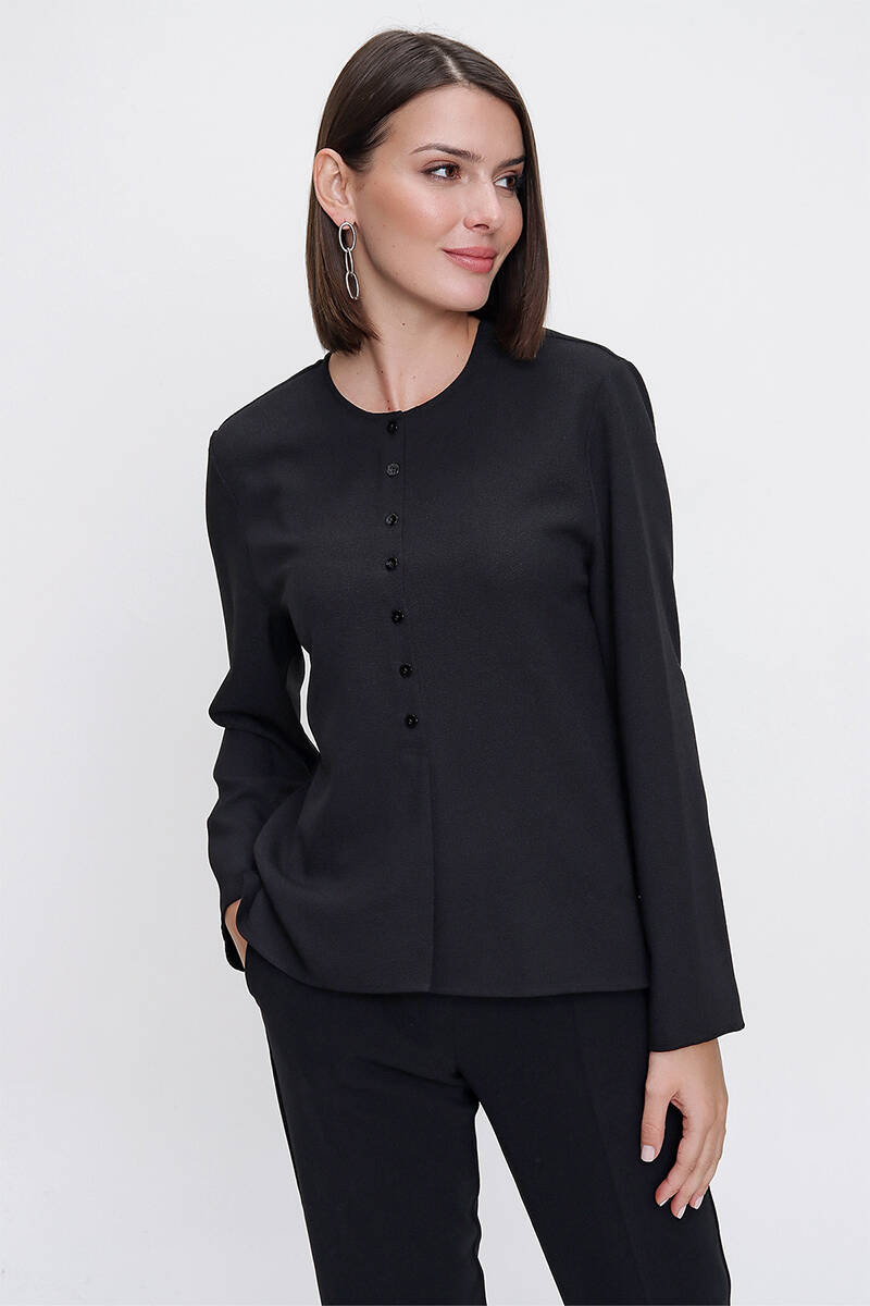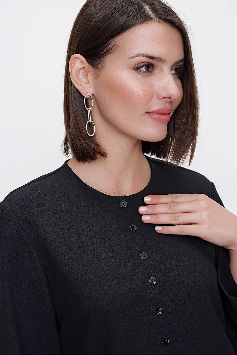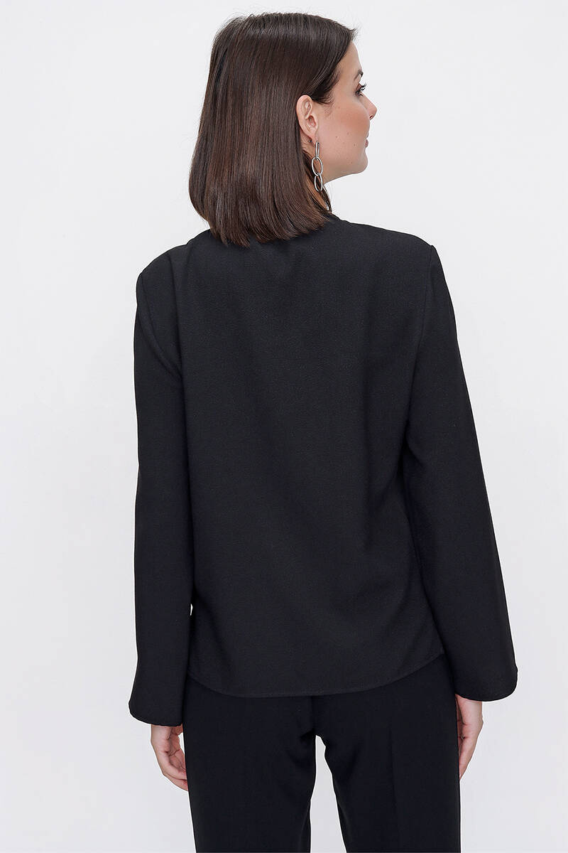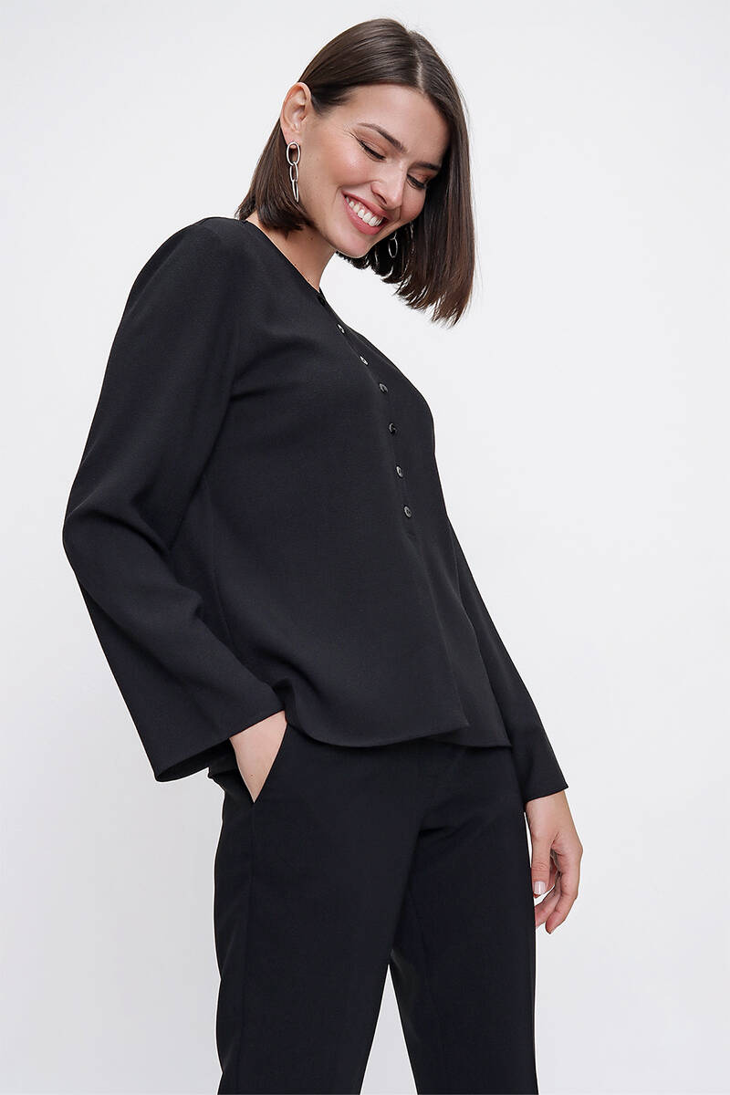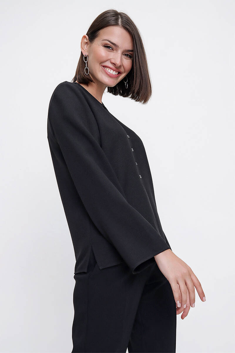Antrasit Yaka İşlemeli Çizgili Bluz