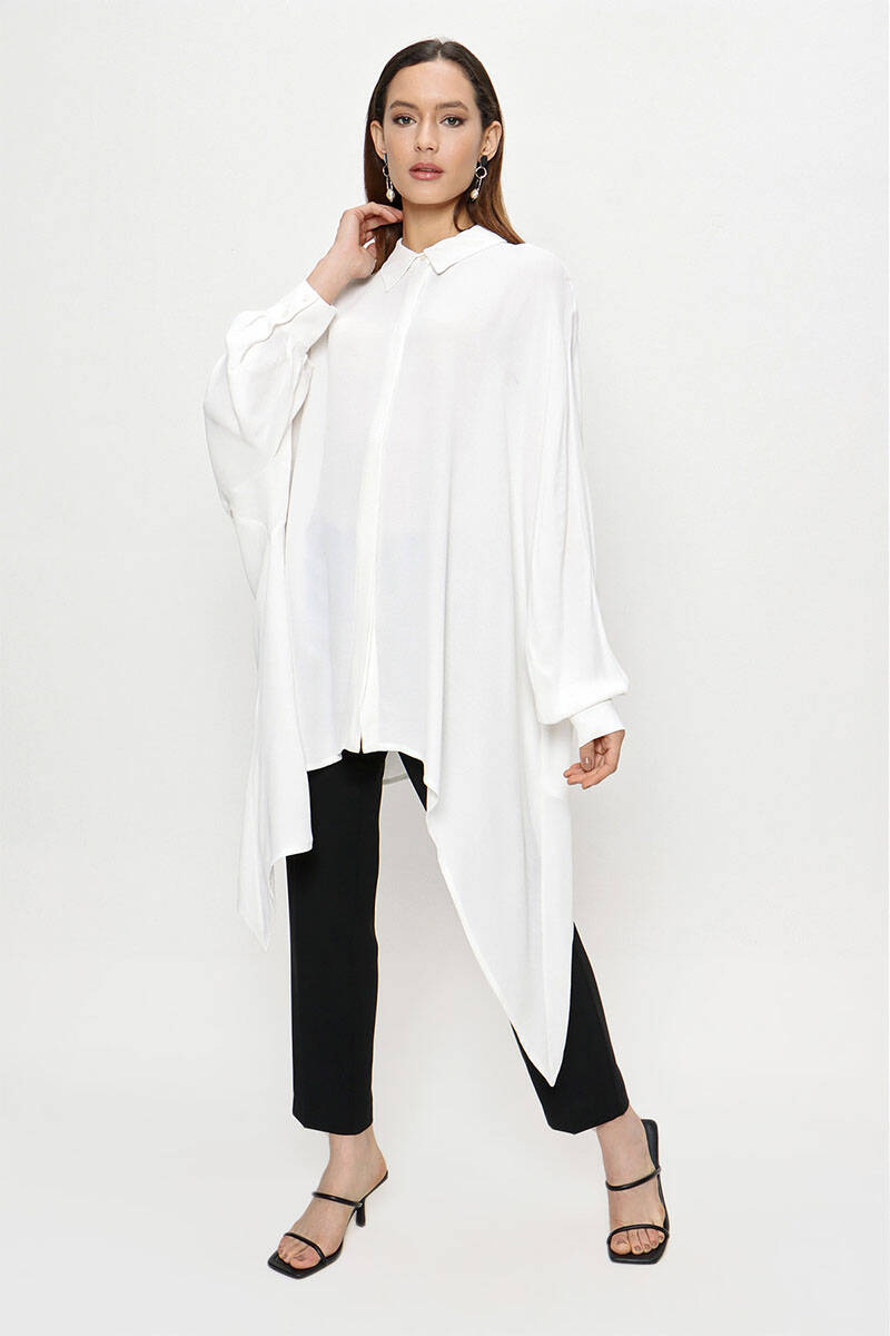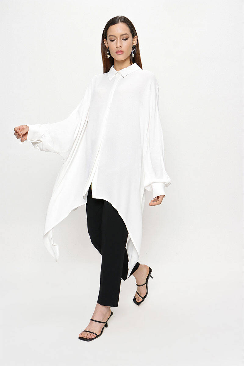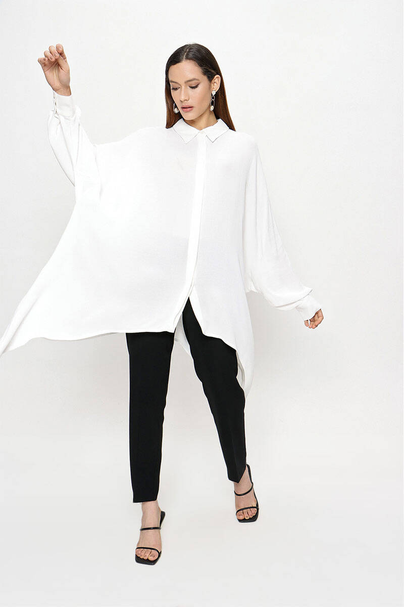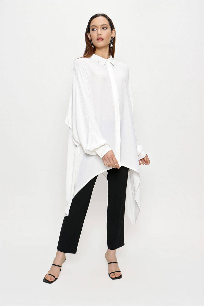 Ekru Pelerinli Düğmeli Bluz