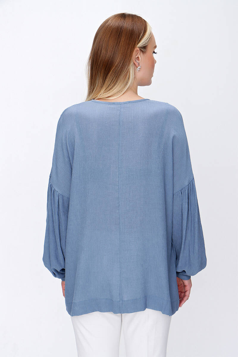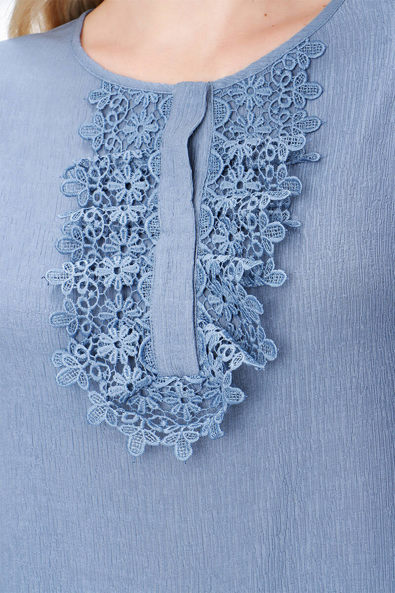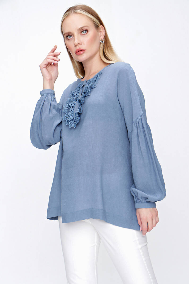 Antrasit Yaka İşlemeli Çizgili Bluz