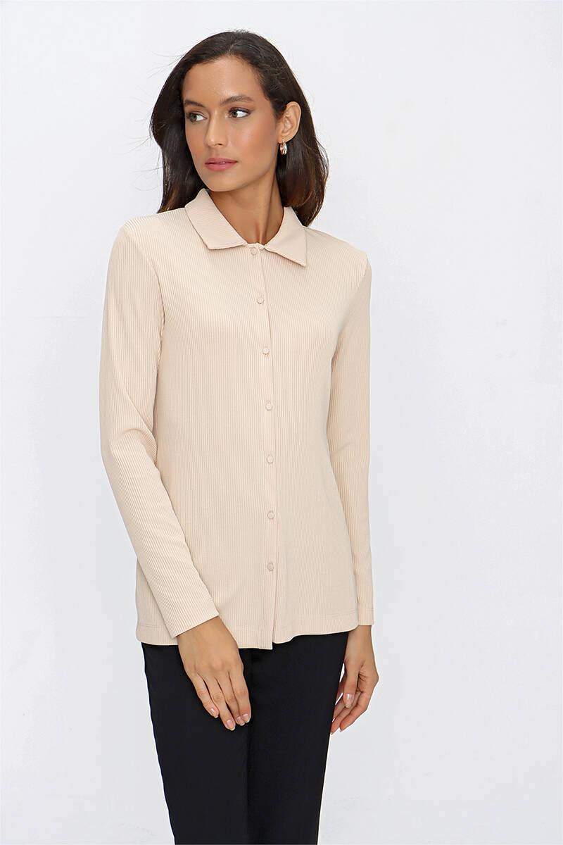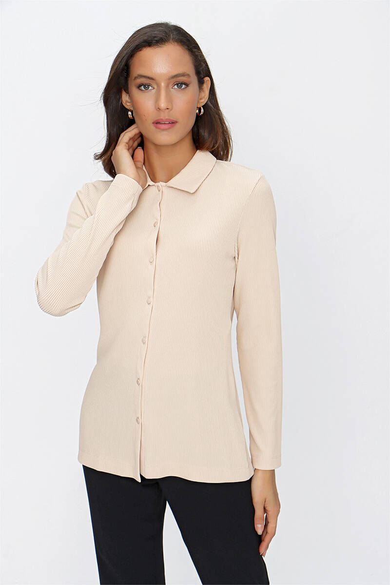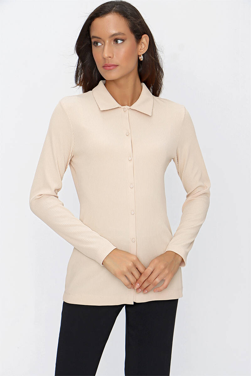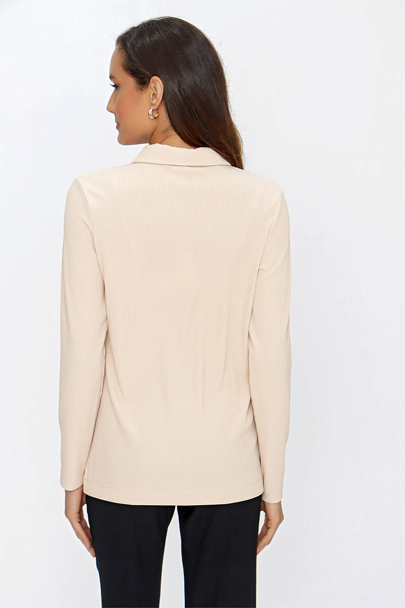 Ekru Katlama Detaylı Bluz
