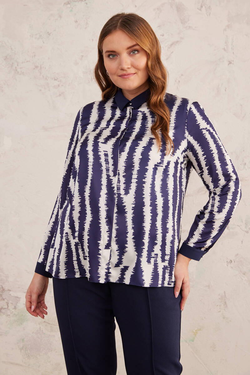 Lacivert Desenli Bluz