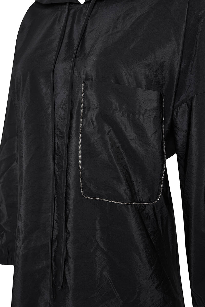 Siyah Zincir Detaylı Kapüşonlu Bluz