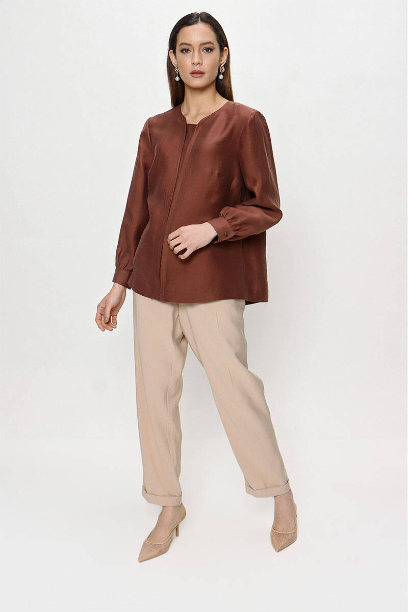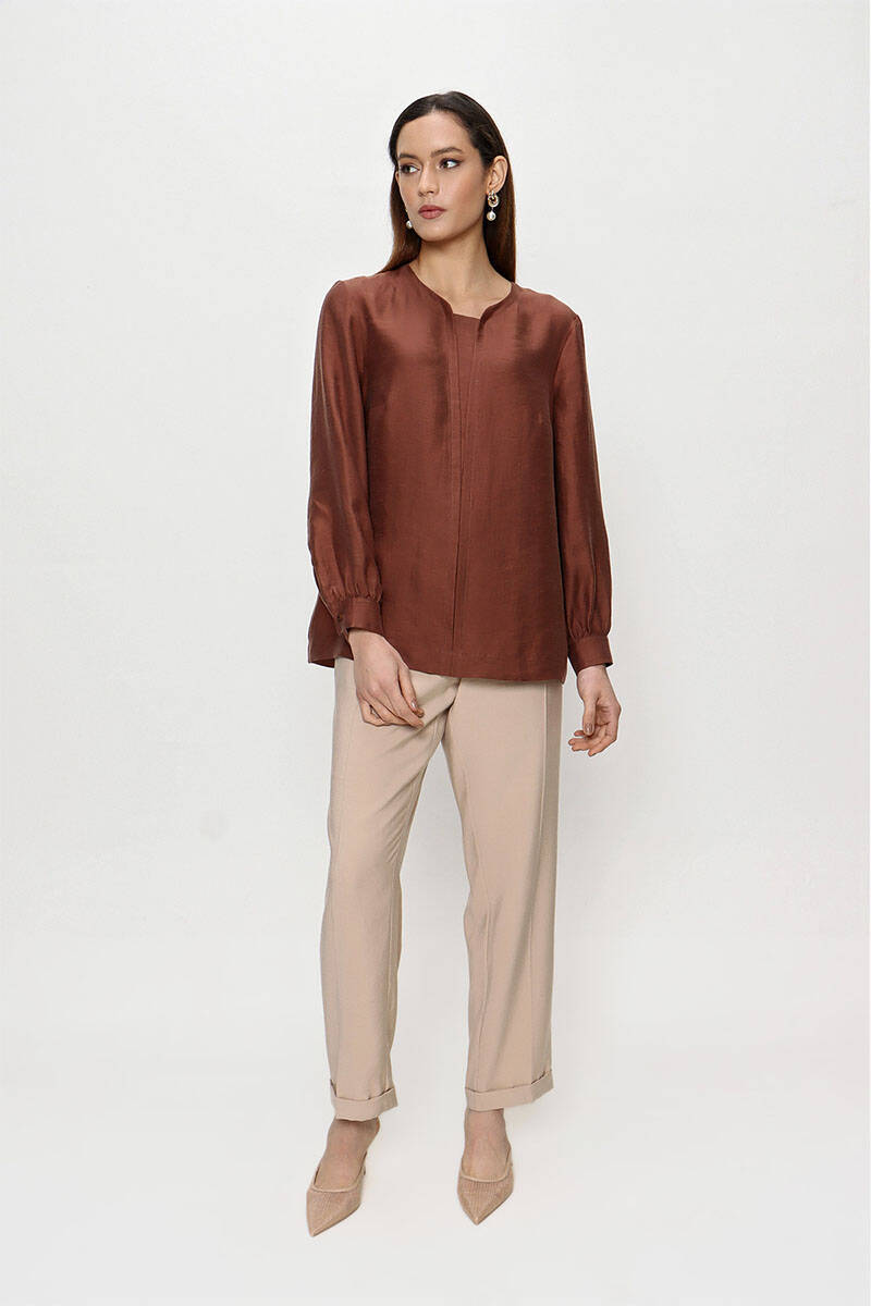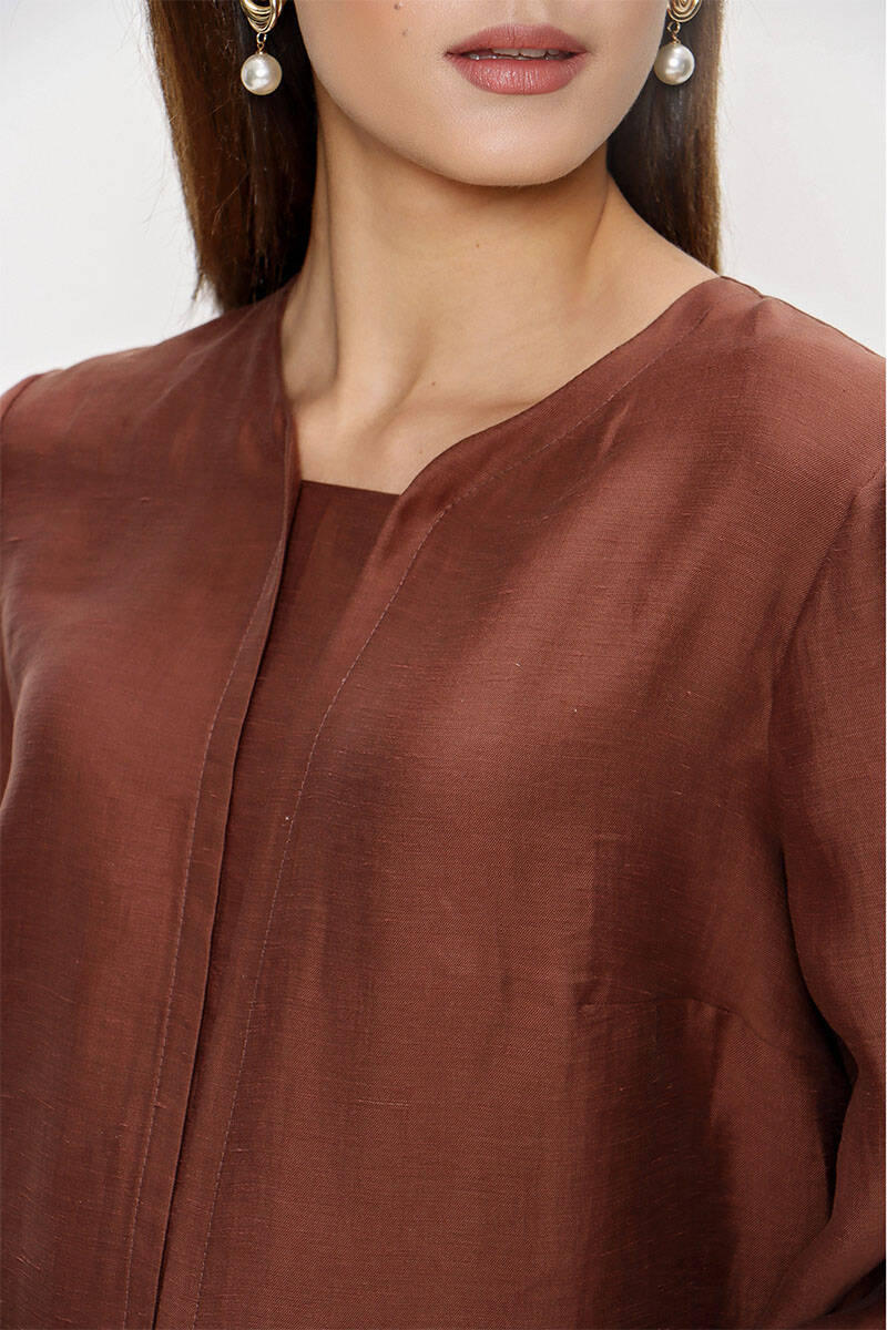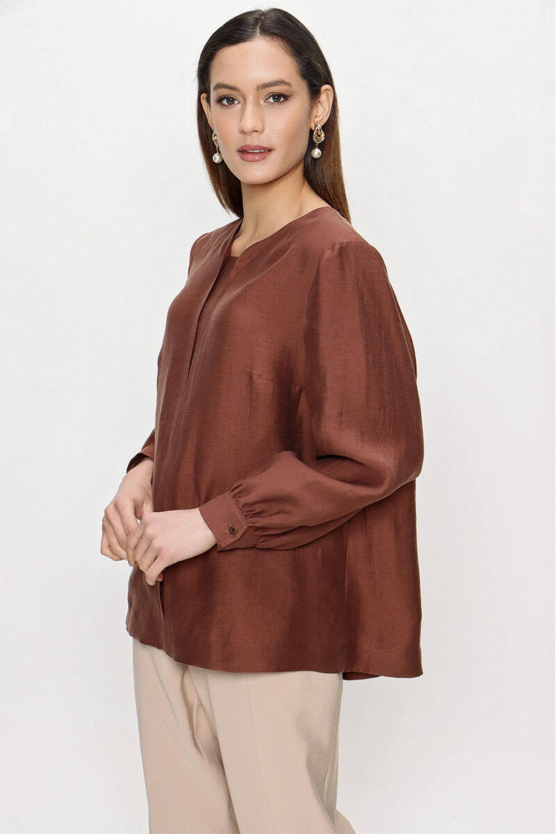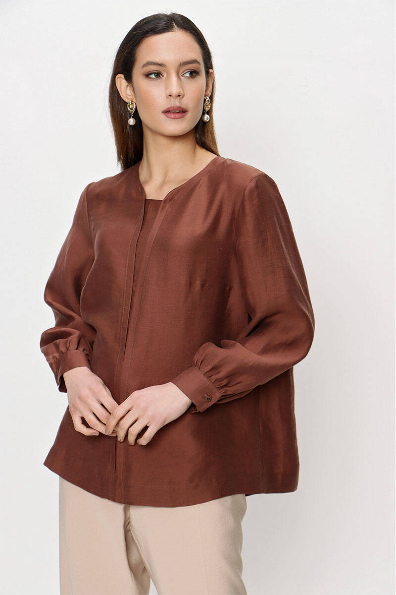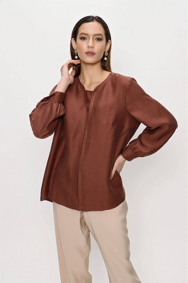 Kahverengi Keten Bluz
