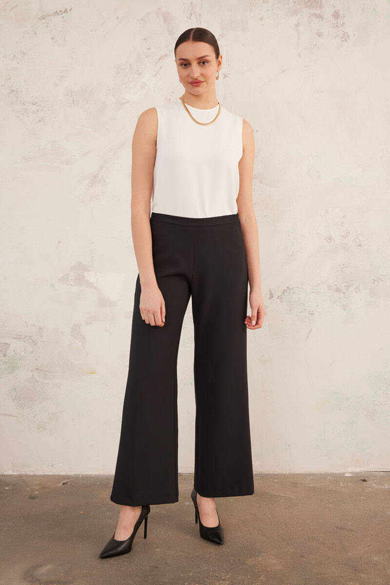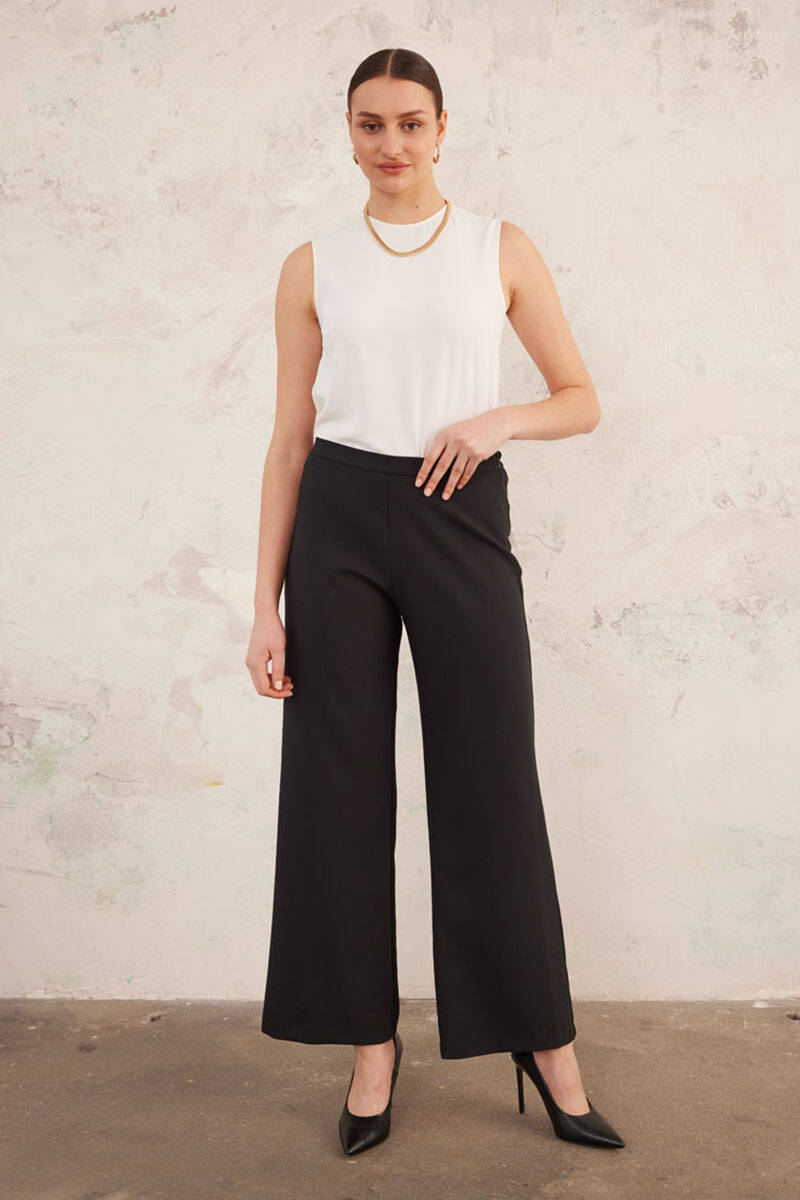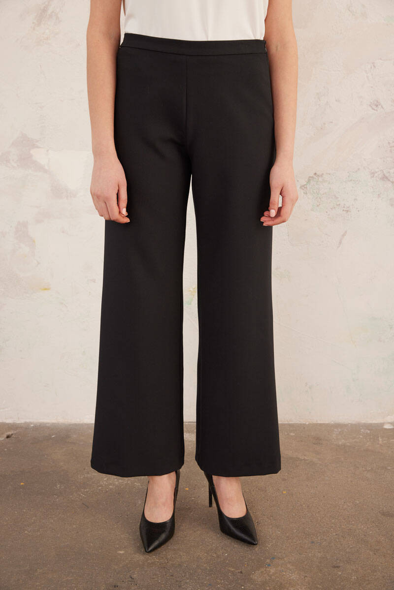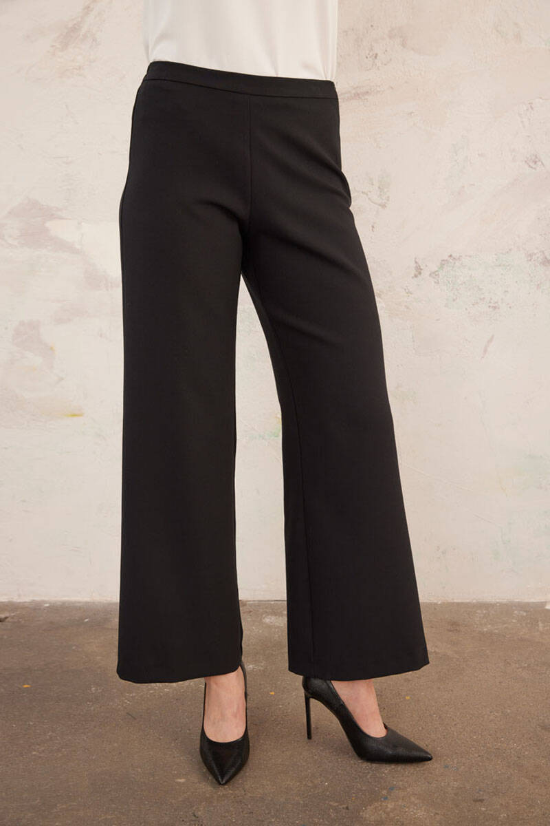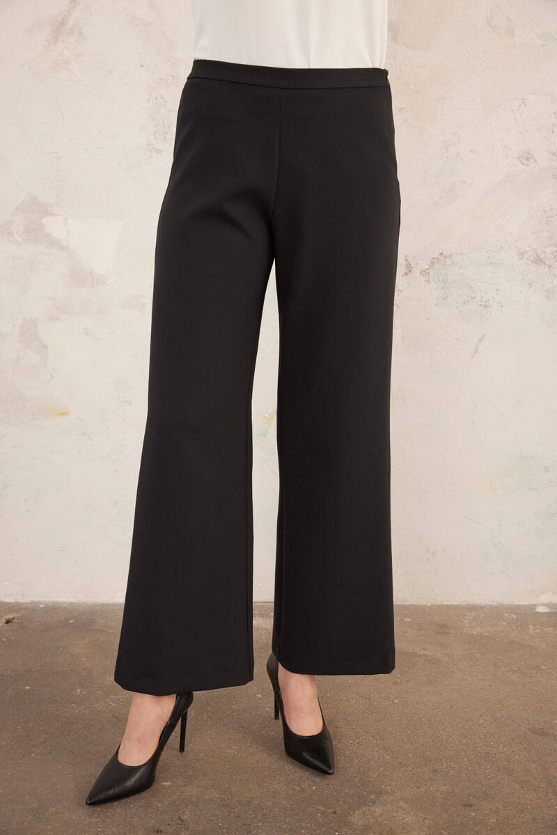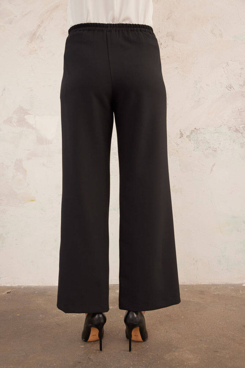 Siyah Arka Bel Lastikli Geniş Paça Pantolon
