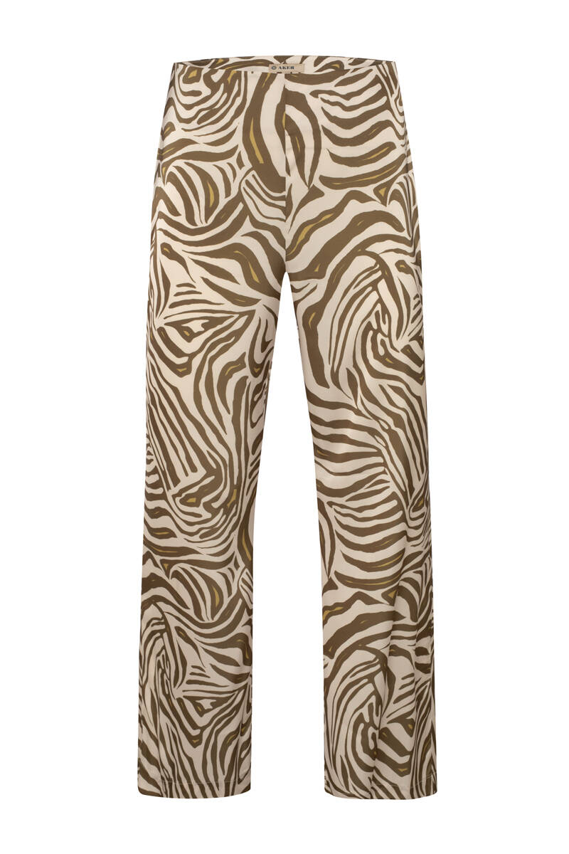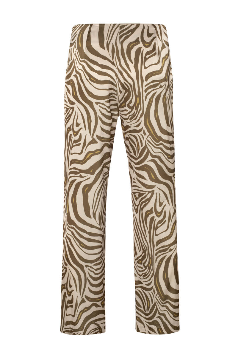 Yeşil Yandan Fermuarlı Saten Zebra Desen Pantolon