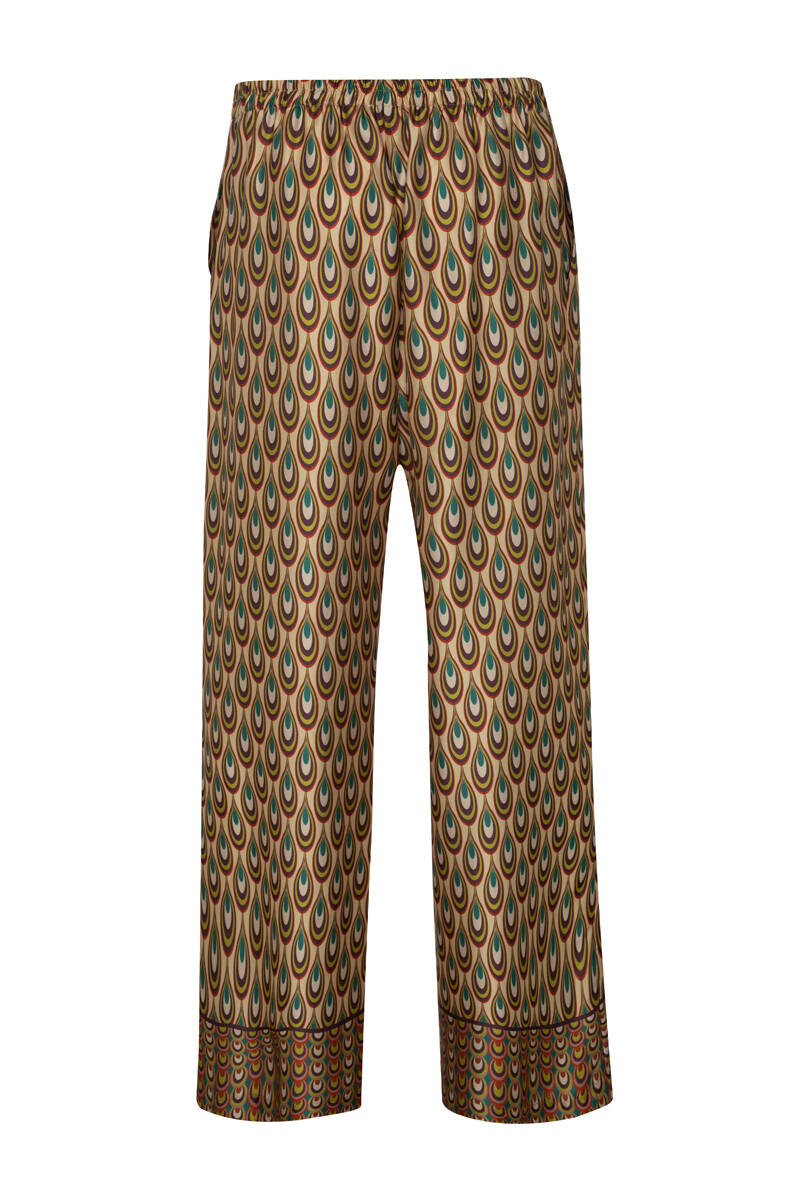 Yeşil Desenli Saten Pantolon