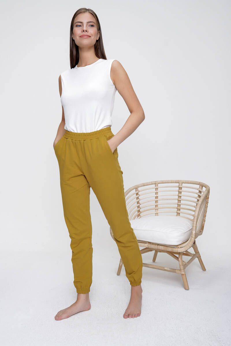 Lacivert Kalın Kemerli Lastikli Pantolon