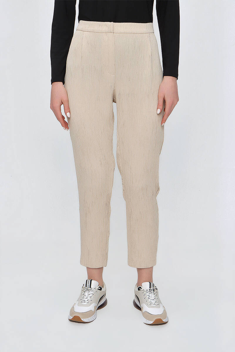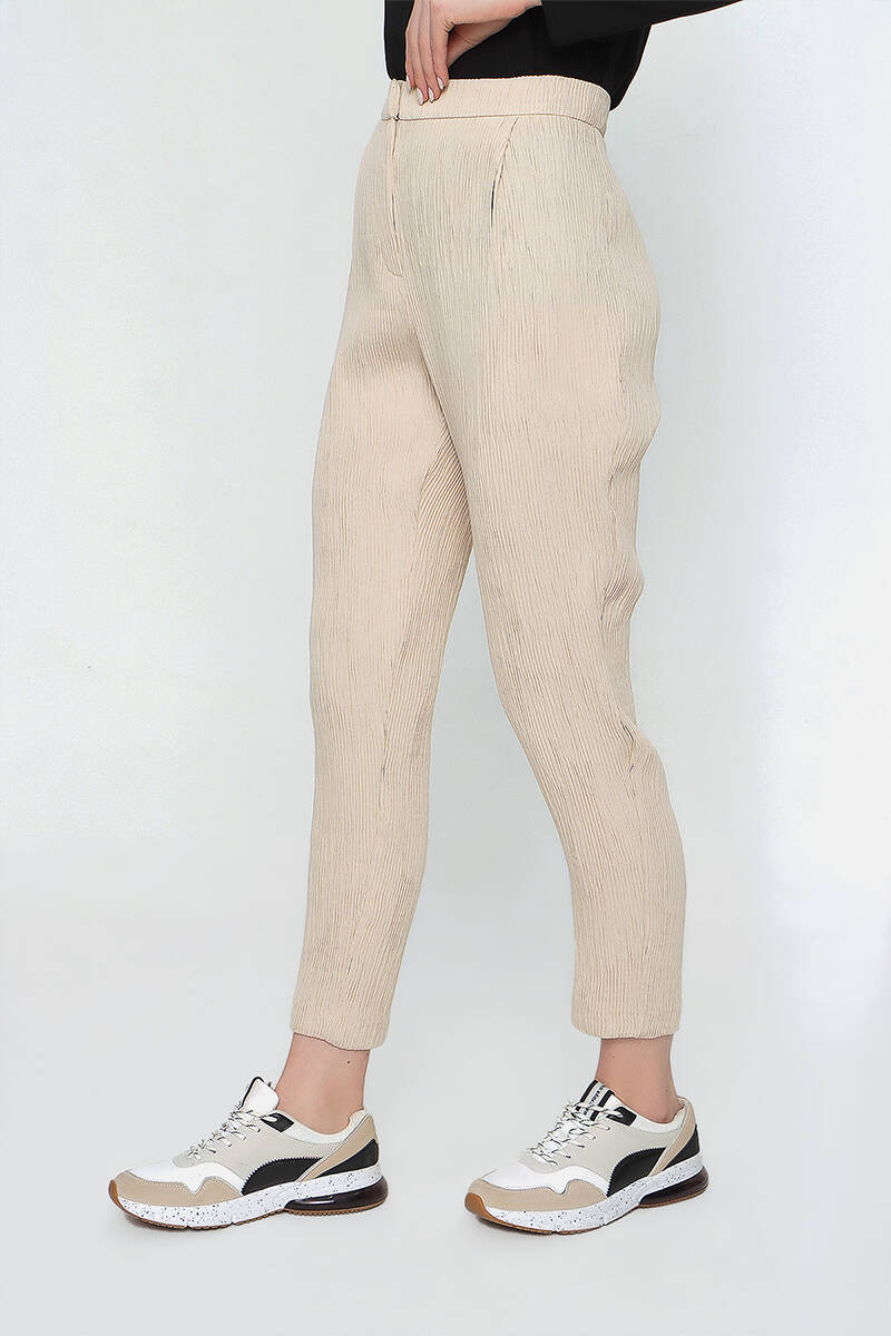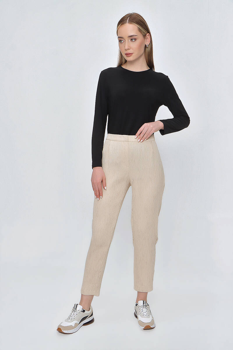 Bej Arka Bel Lastikli Dokulu Kumaş Pantolon