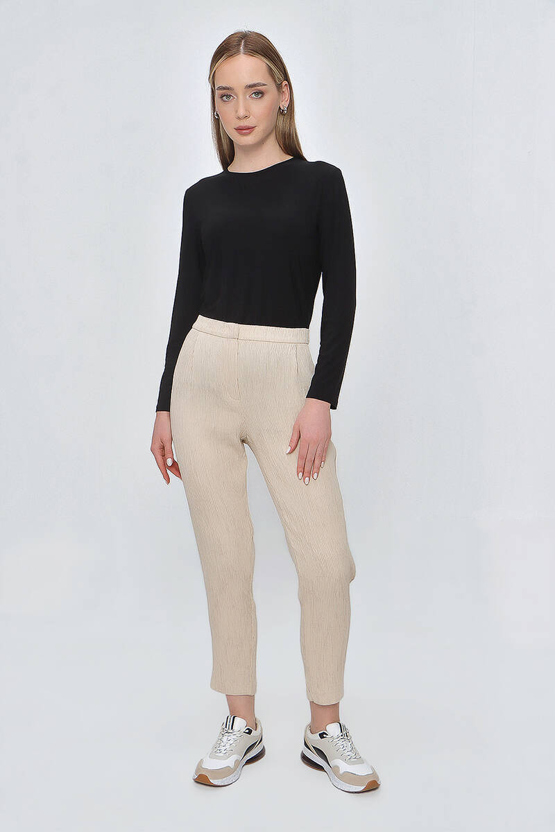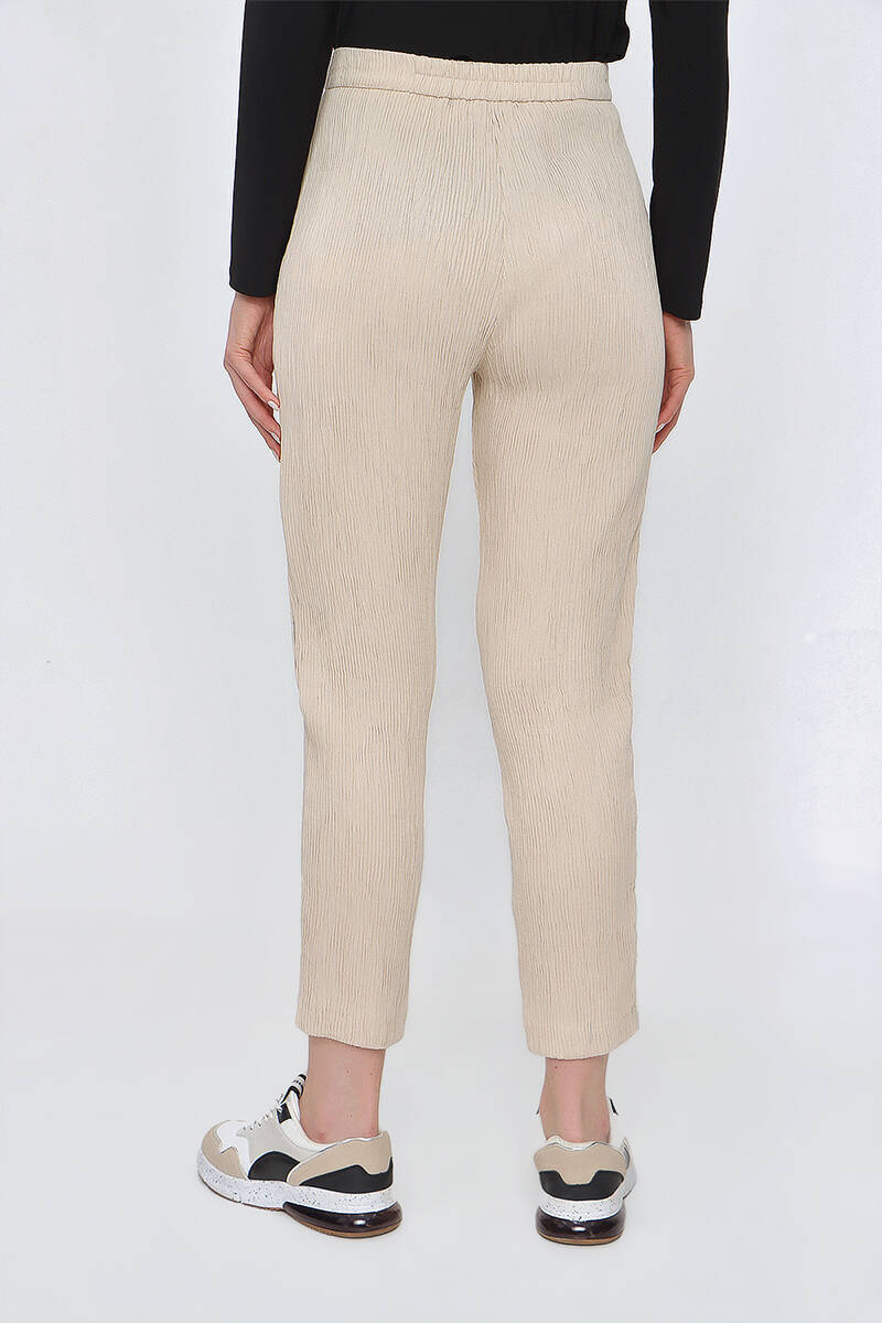 Bej Arka Bel Lastikli Dokulu Kumaş Pantolon