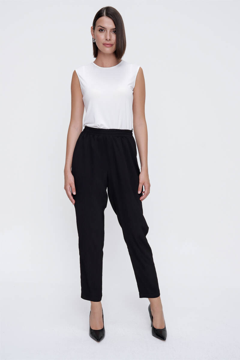 Lacivert Kalın Kemerli Lastikli Pantolon