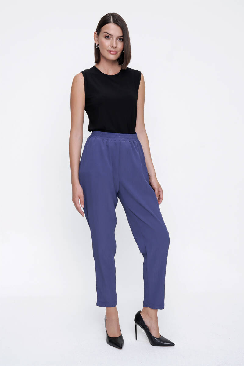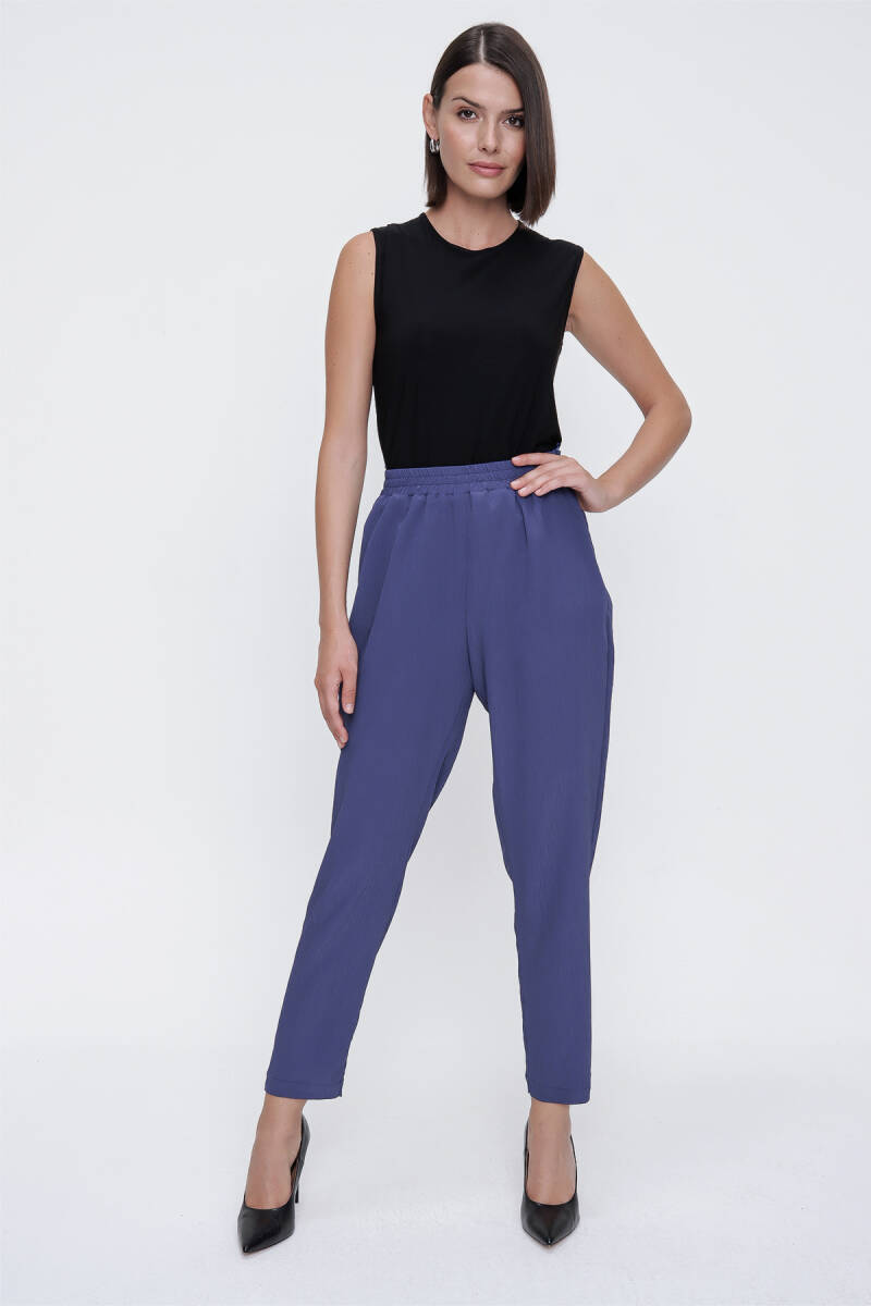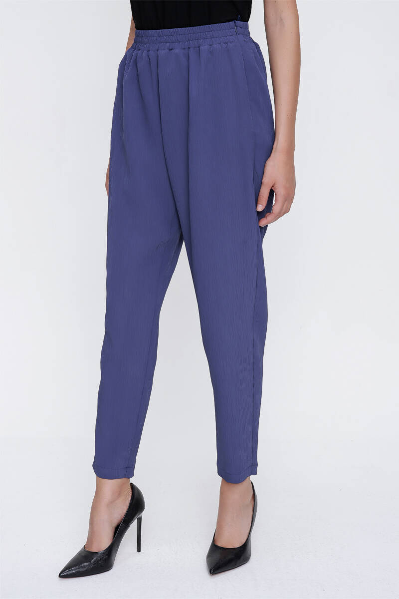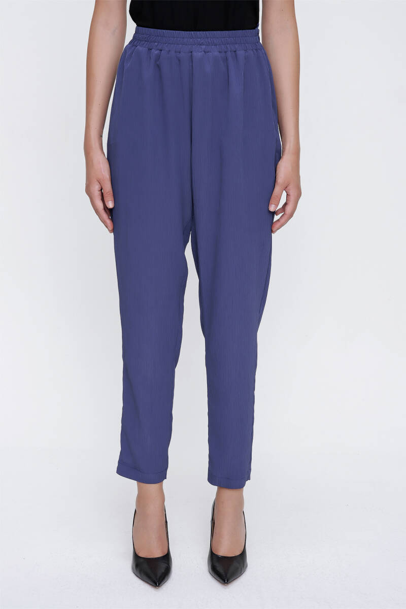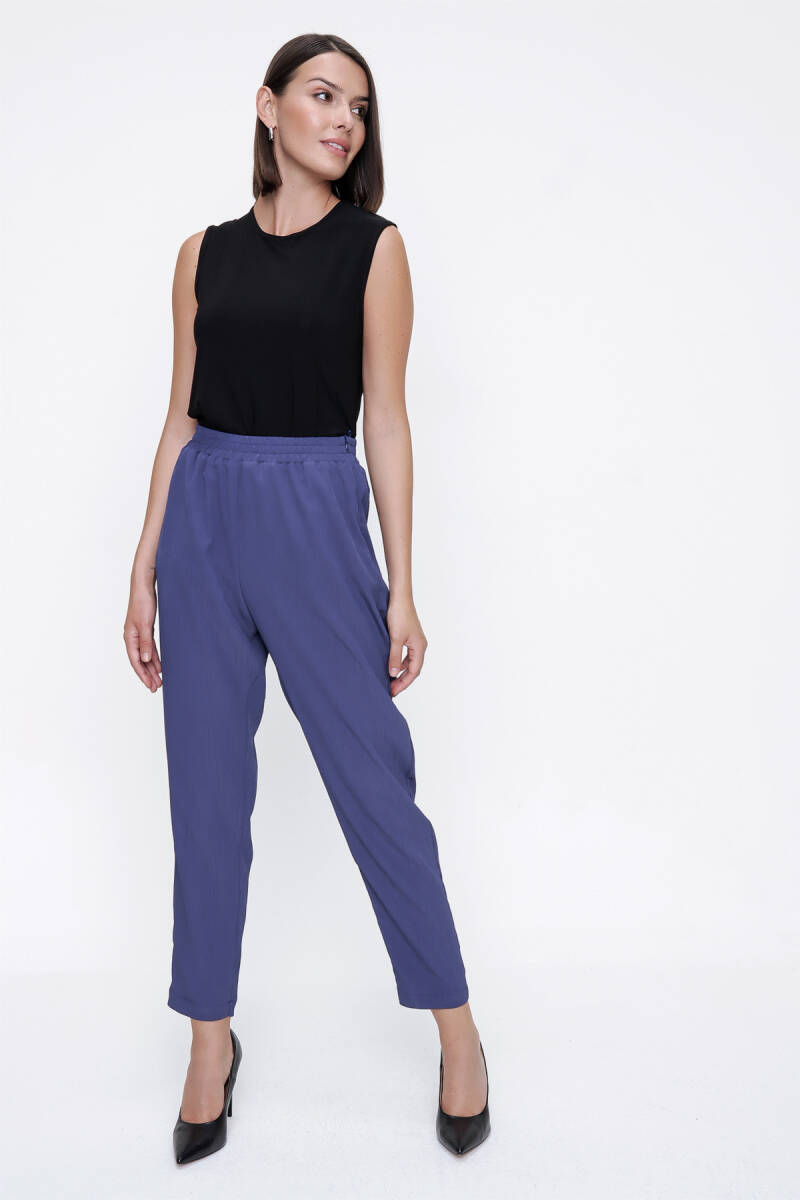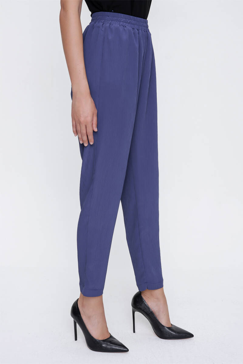 Lacivert Kalın Kemerli Lastikli Pantolon