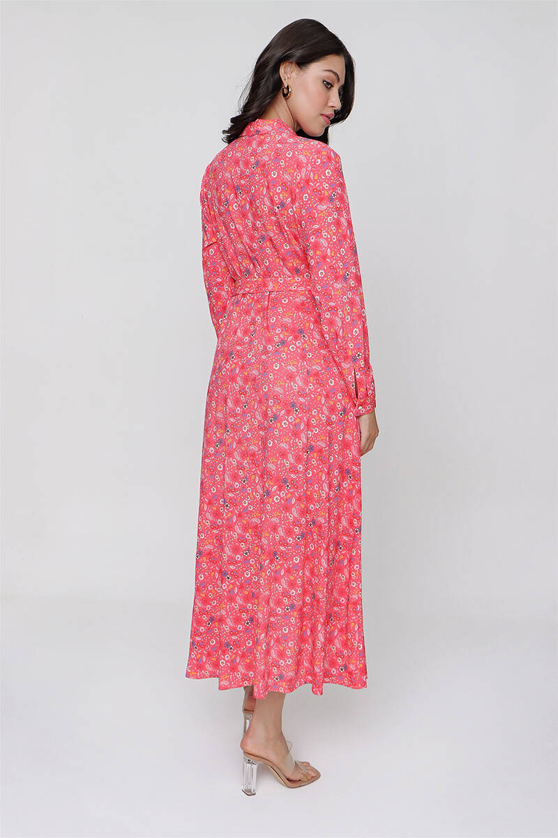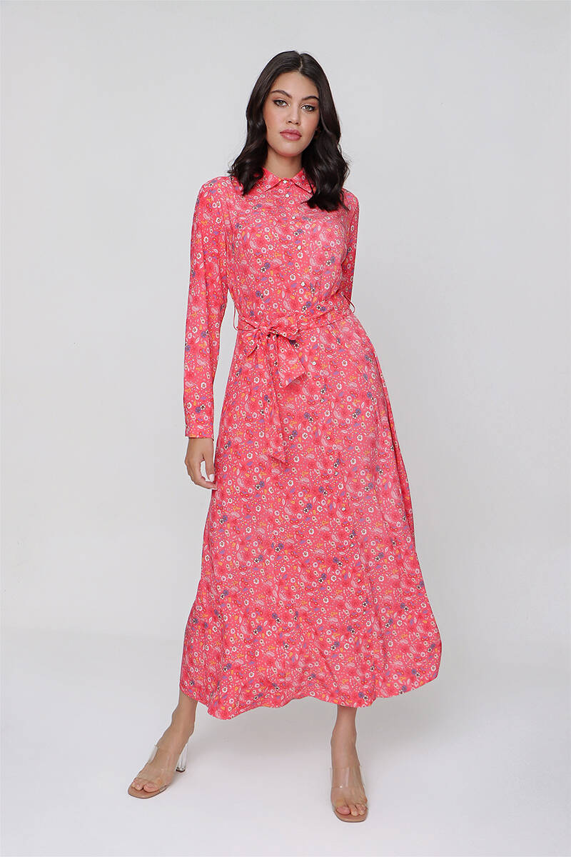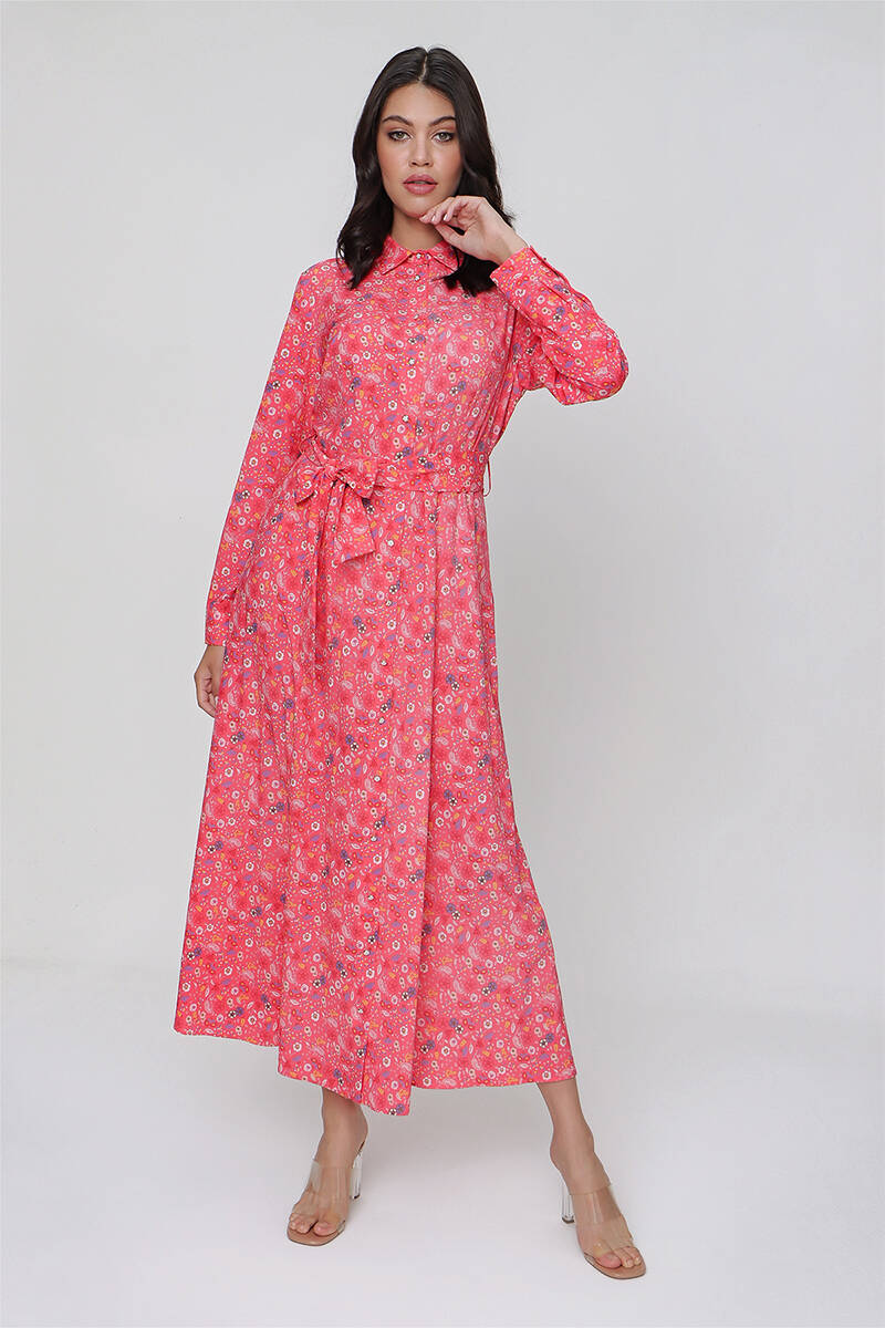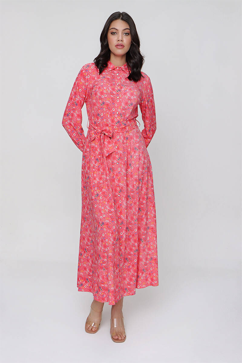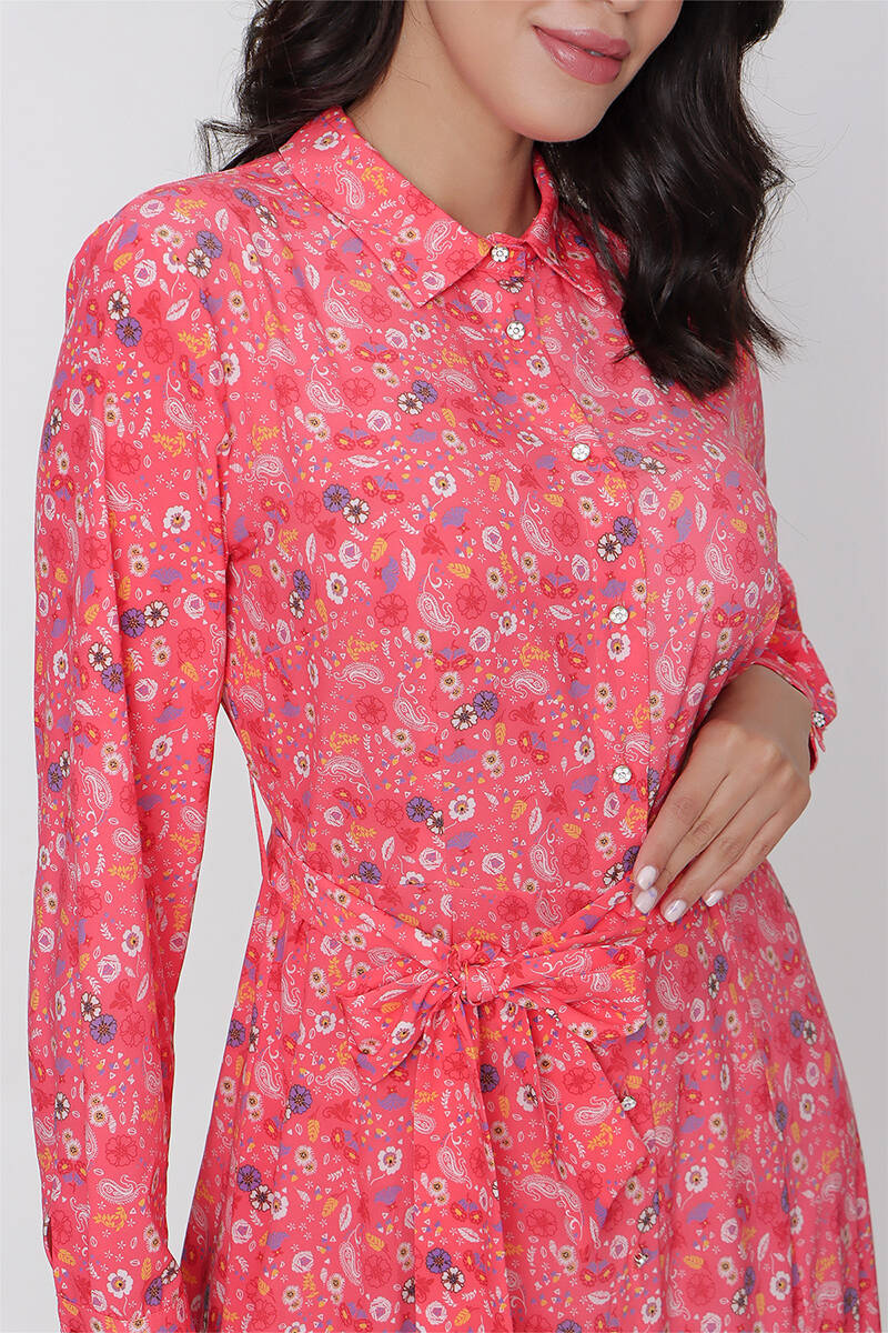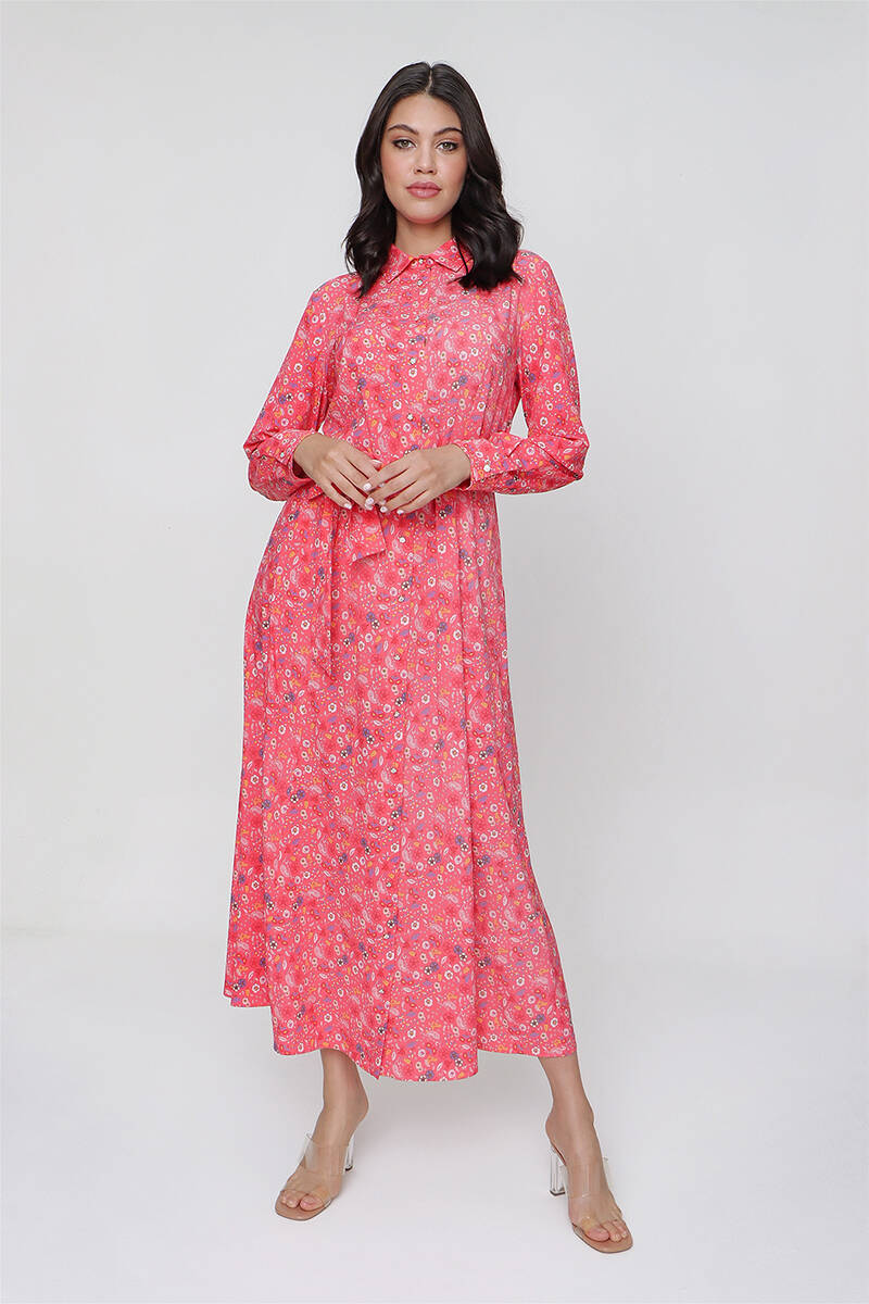 Mercan Çiçekli Gömlek Elbise