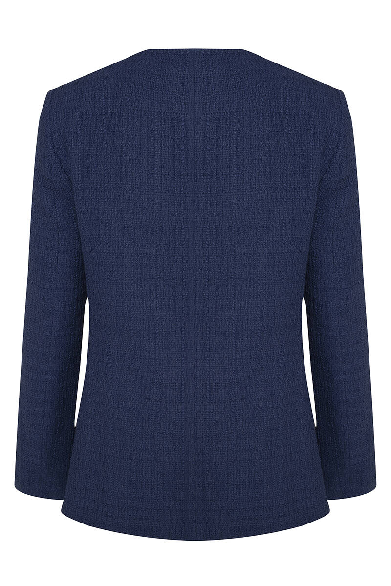 Lacivert Gold Düğme Detaylı Yakasız Düz Kesim Ceket