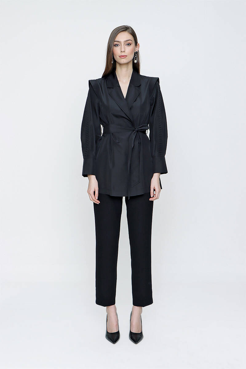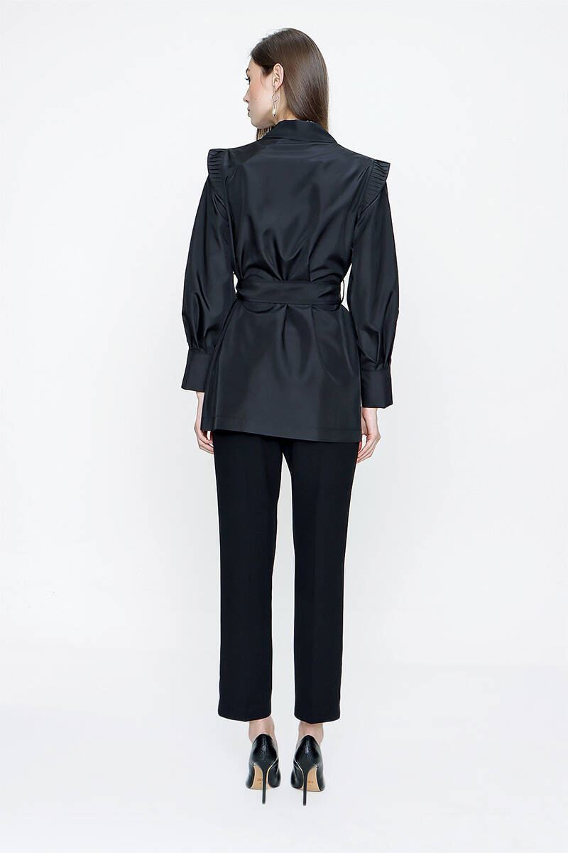 Kırmızı Fleto Cepli Düğmeli Ceket