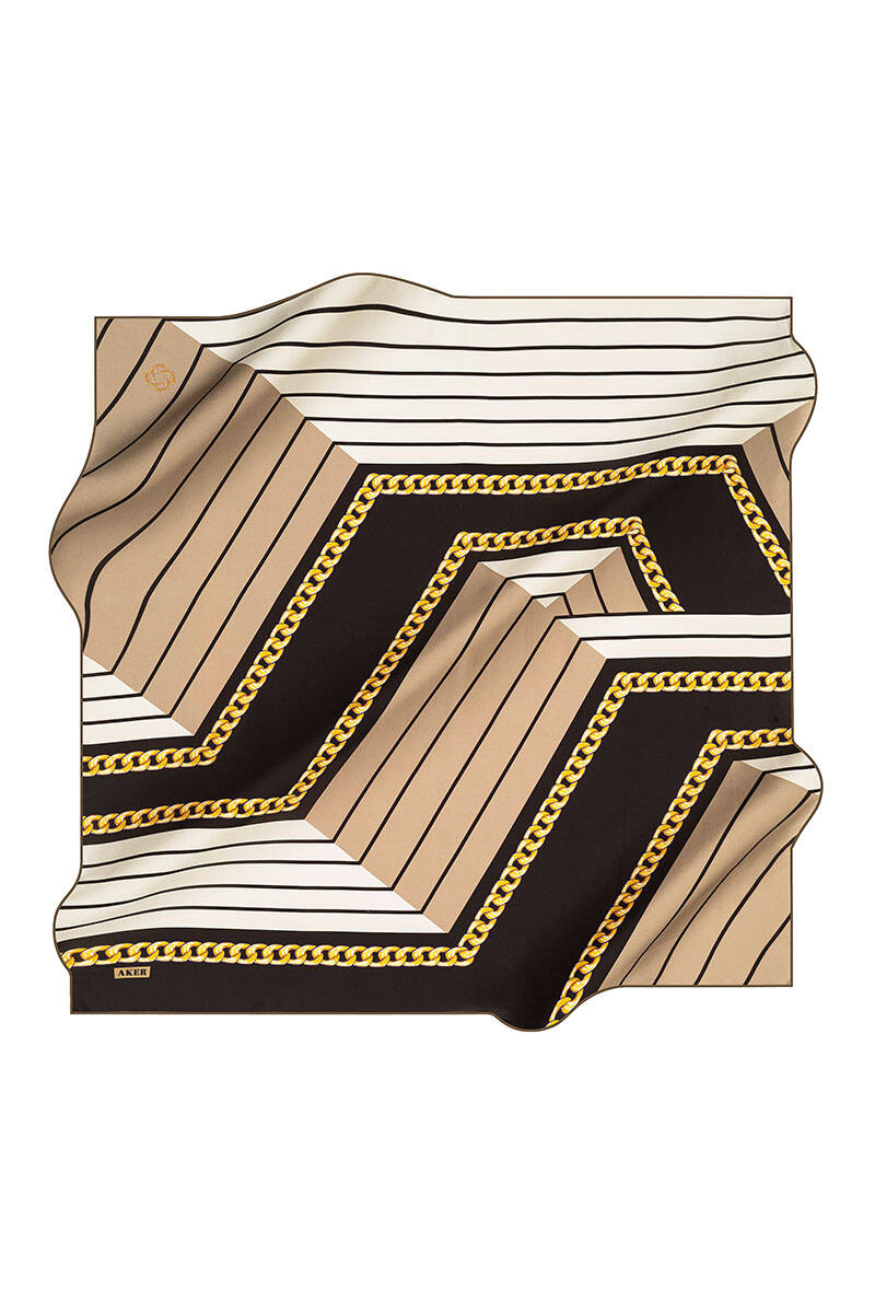 Logo Desenli 90X90 Aker İpek Tivil Eşarp