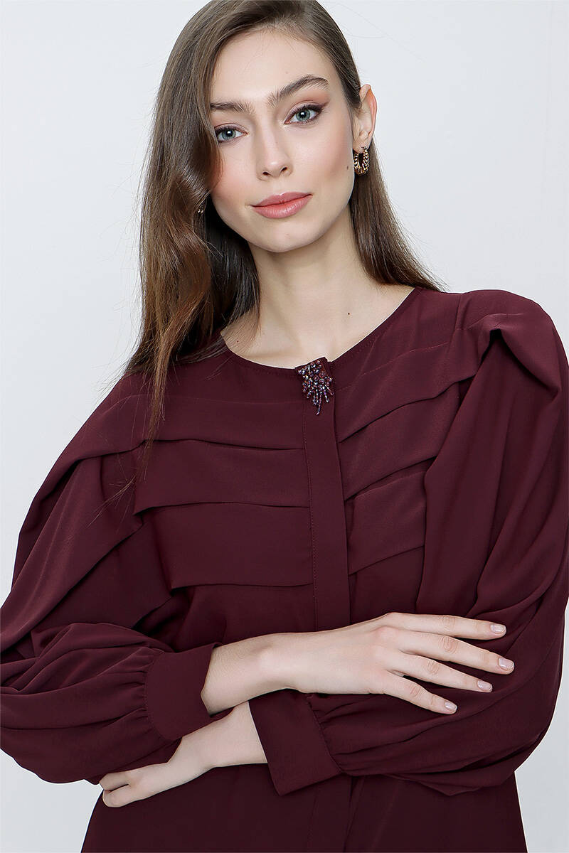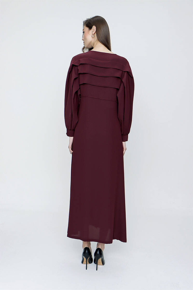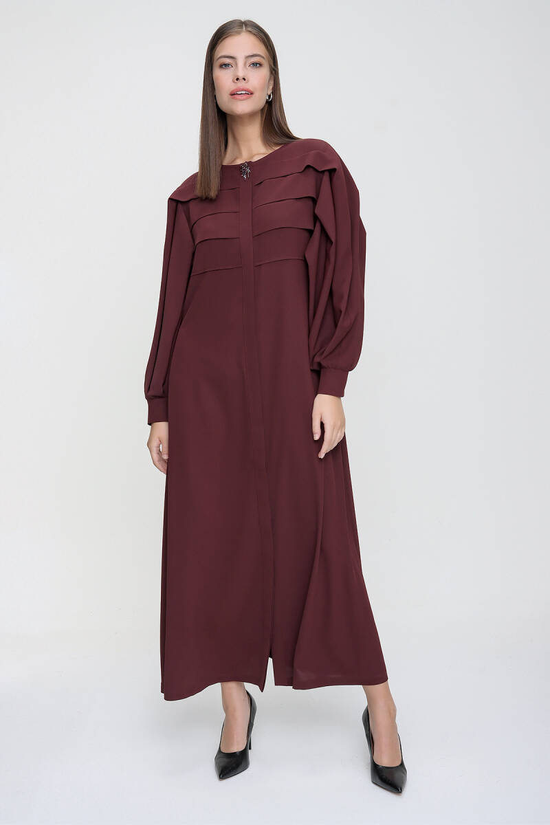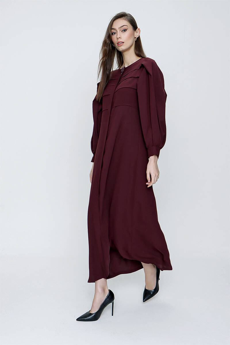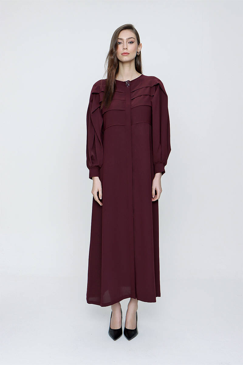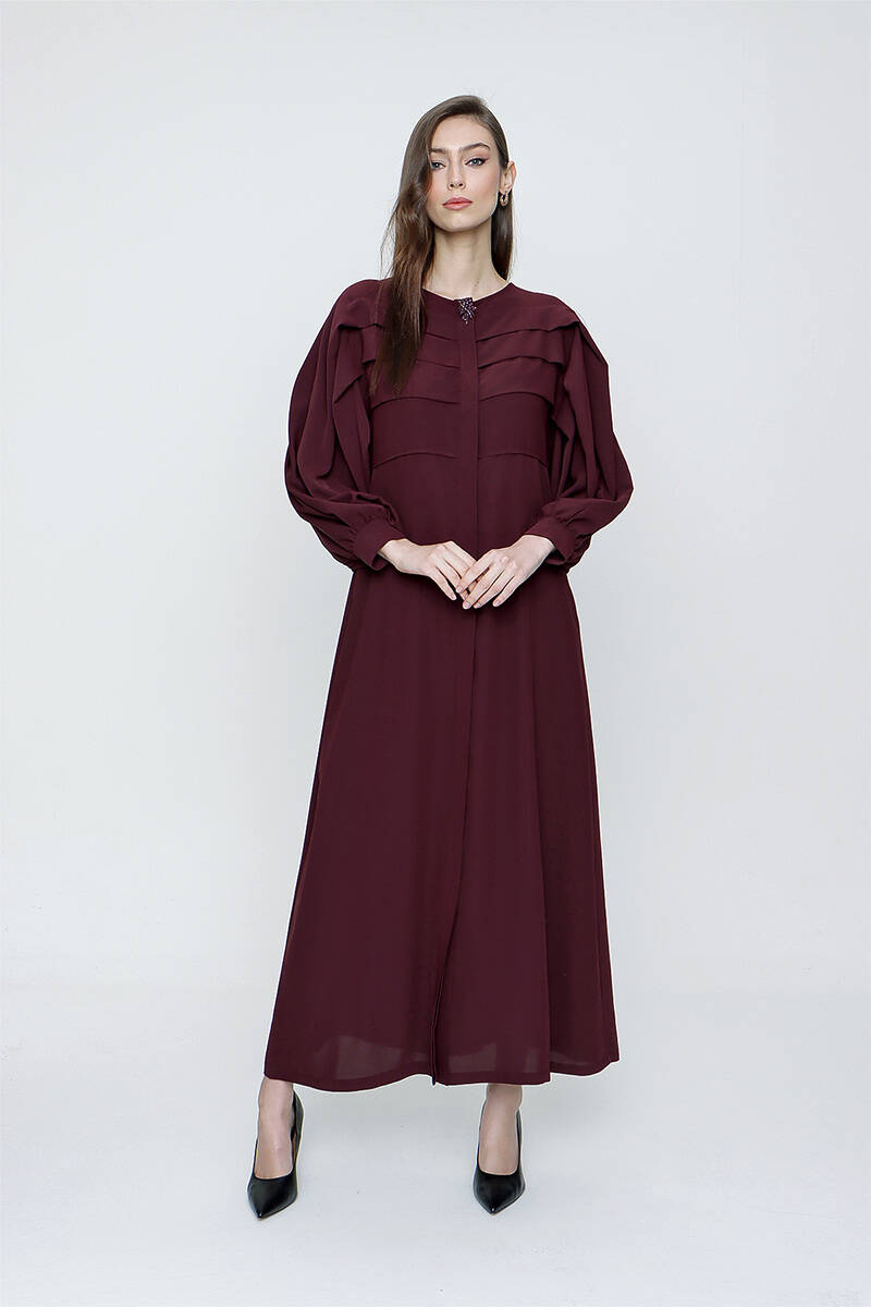 Mürdüm Pile Detaylı Balon Kol Ferace