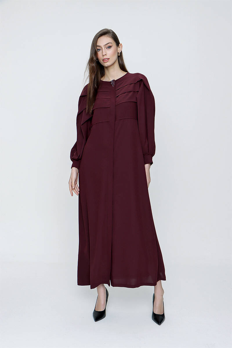 Bordo Anler Detaylı Fermuarlı Ferace