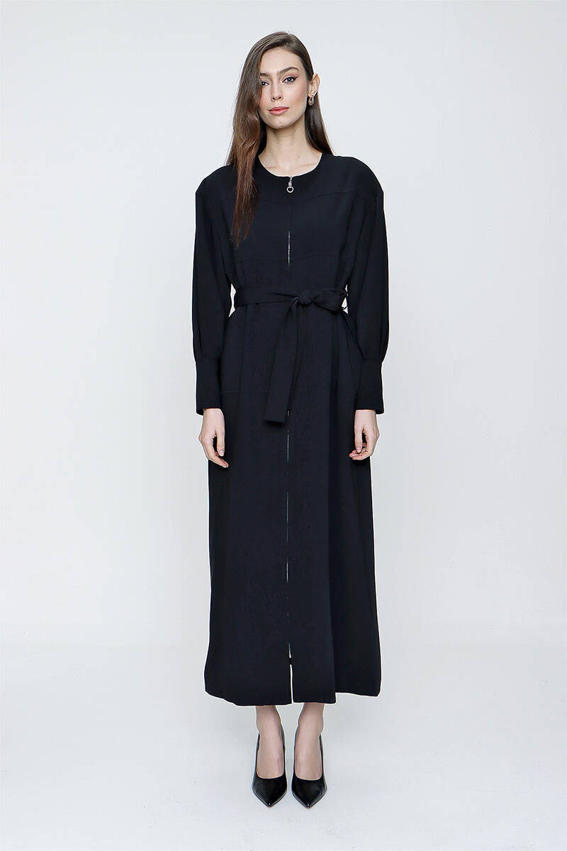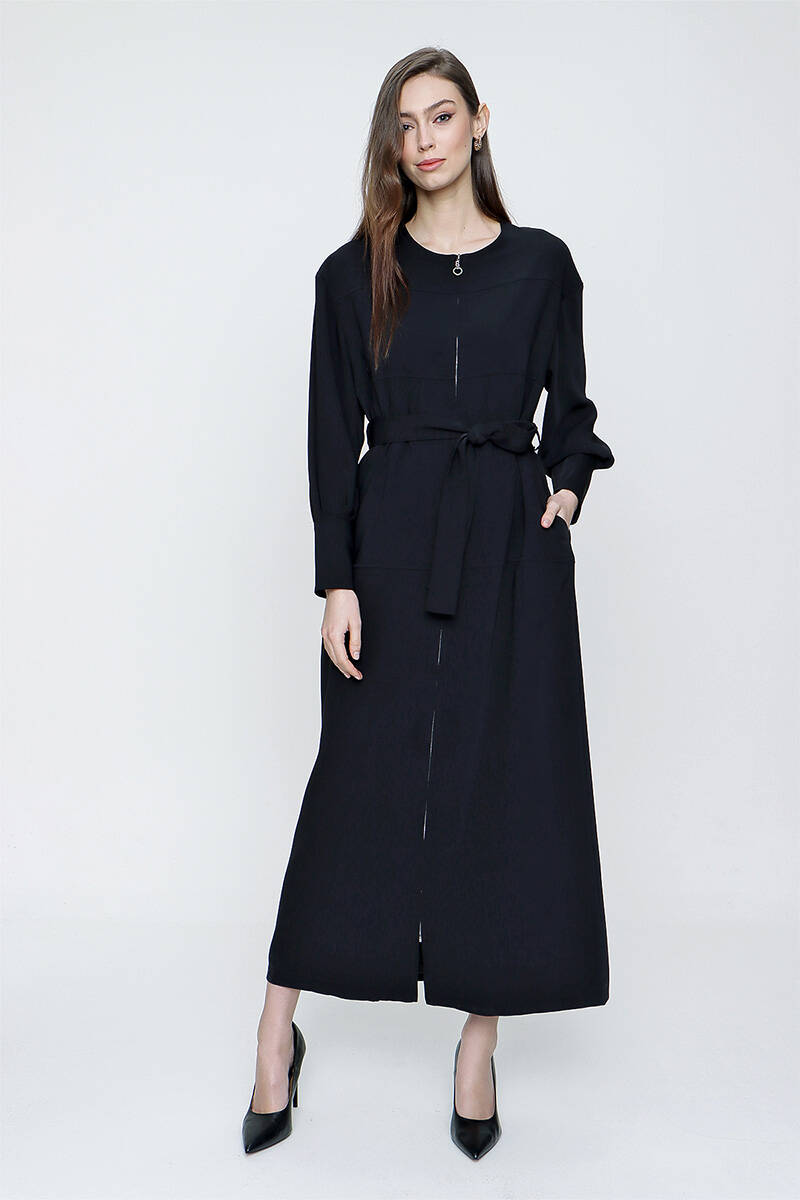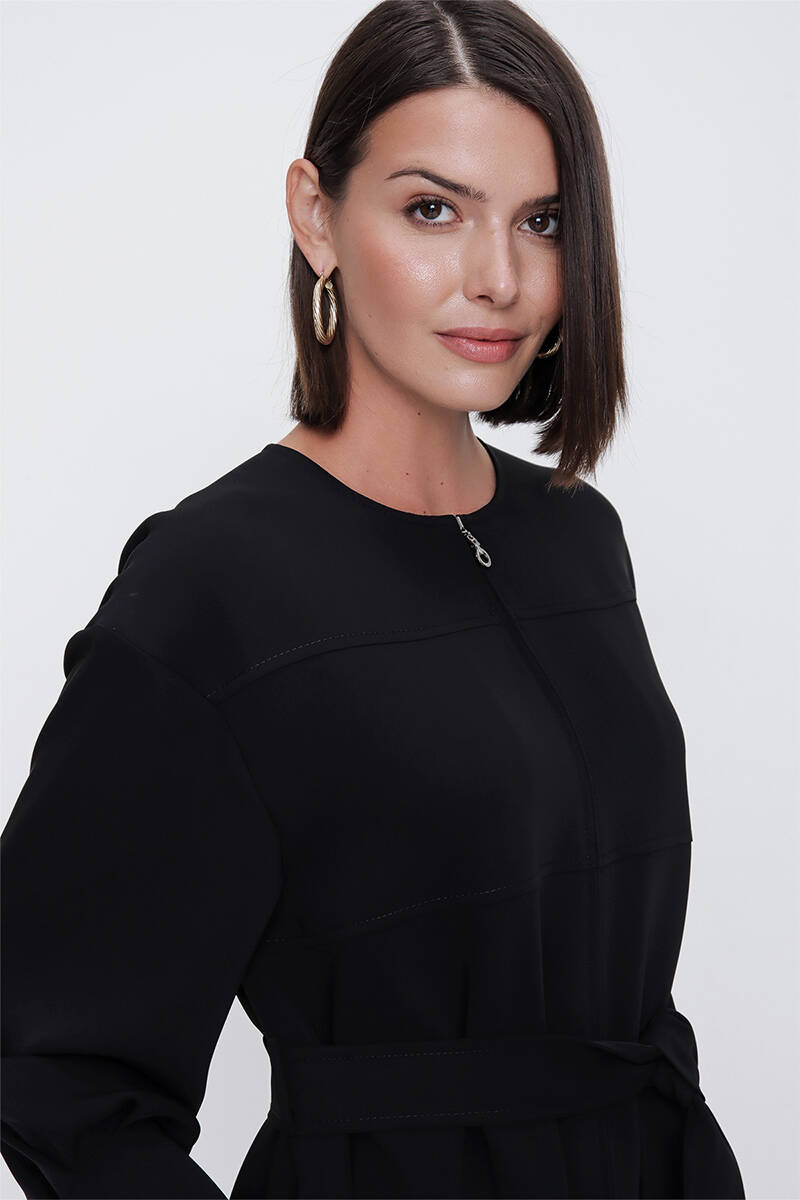Siyah 7639111 Yaka İşlemeli Pardösü