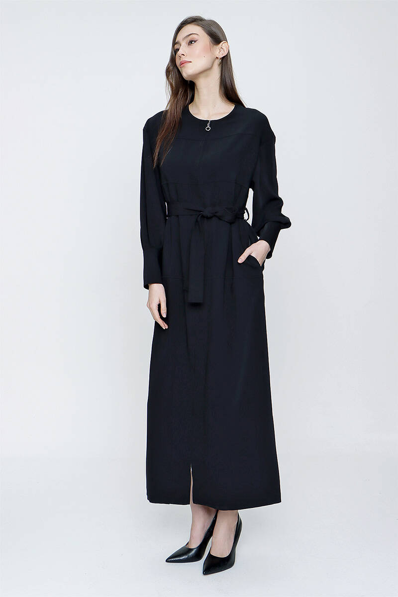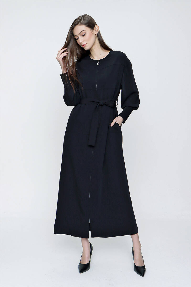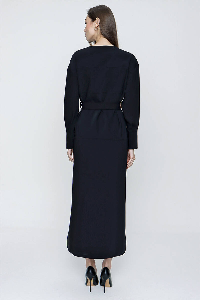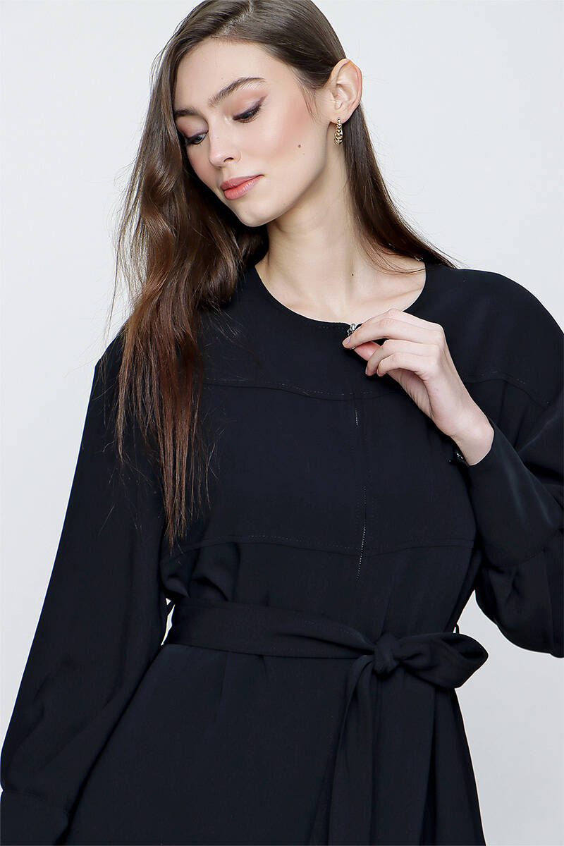 Siyah 7639111 Yaka İşlemeli Pardösü