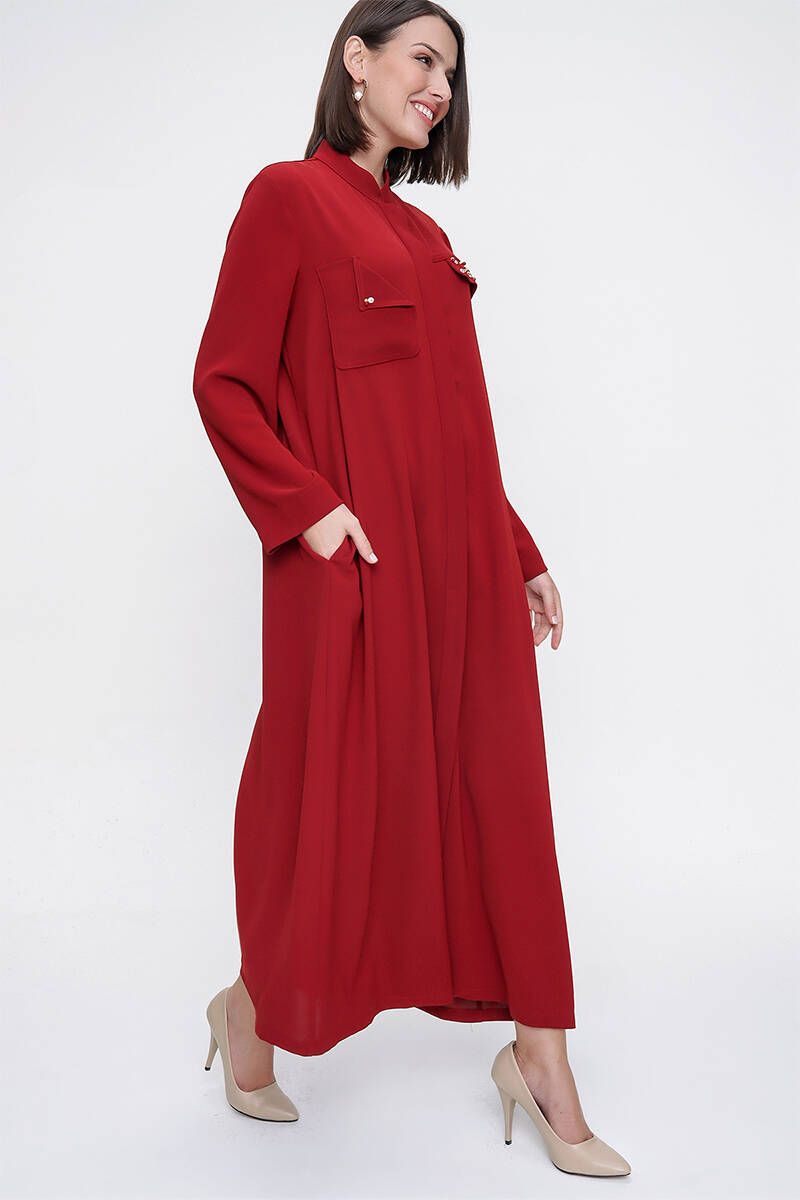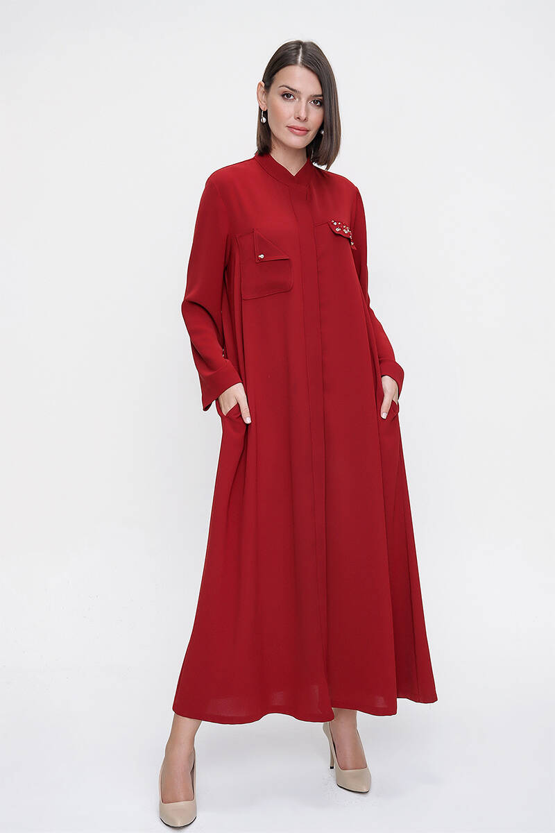 Bordo İşleme Detaylı Belden Kuşaklı Ferace