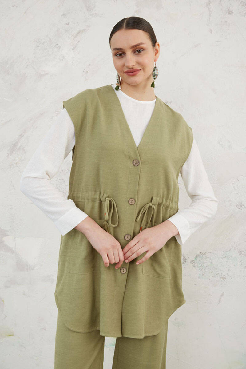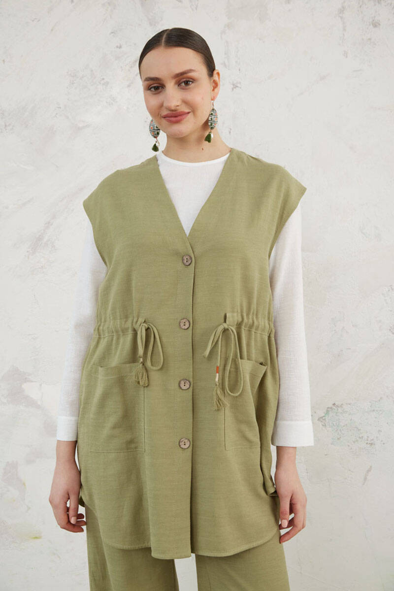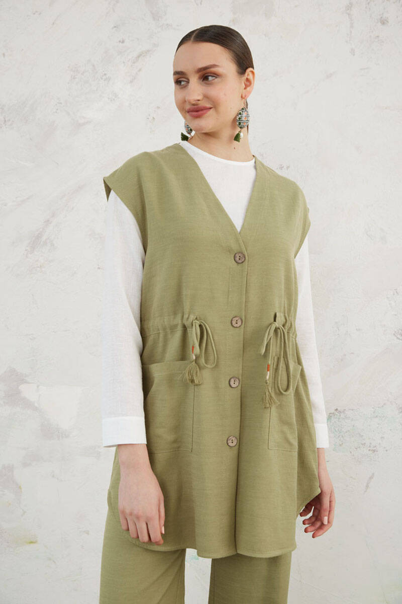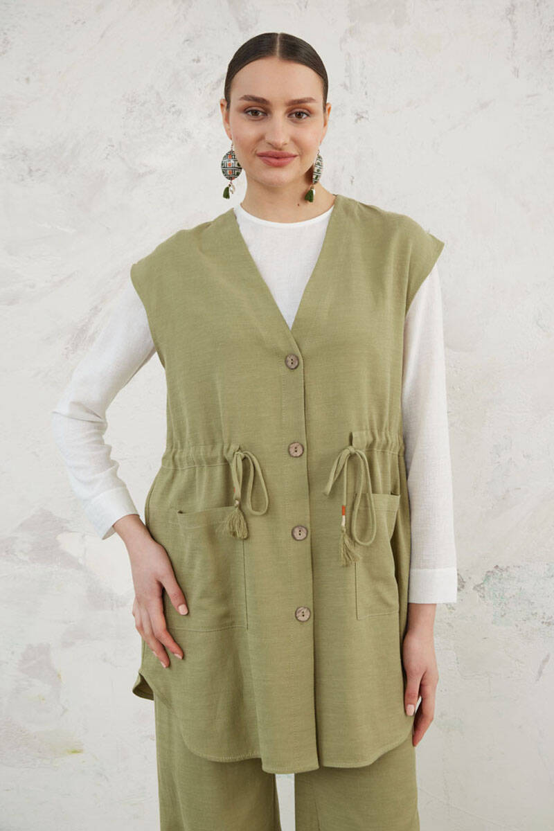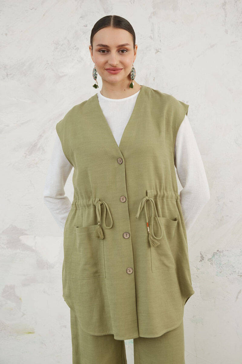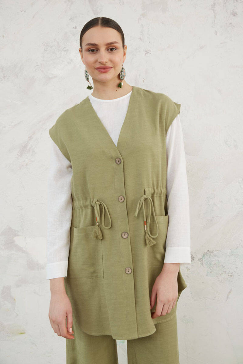 Kiremit Grogren Ve Püskül Detaylı Yelek