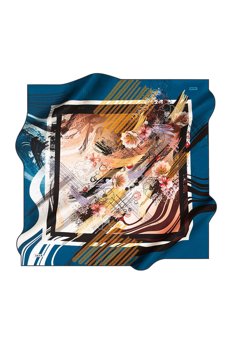 Logo Desenli 90X90 İpek Krep Saten Eşarp