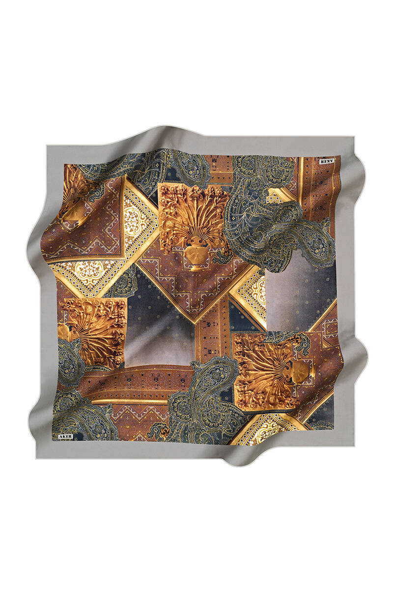 Logo Desenli 90X90 İpek Krep Saten Eşarp