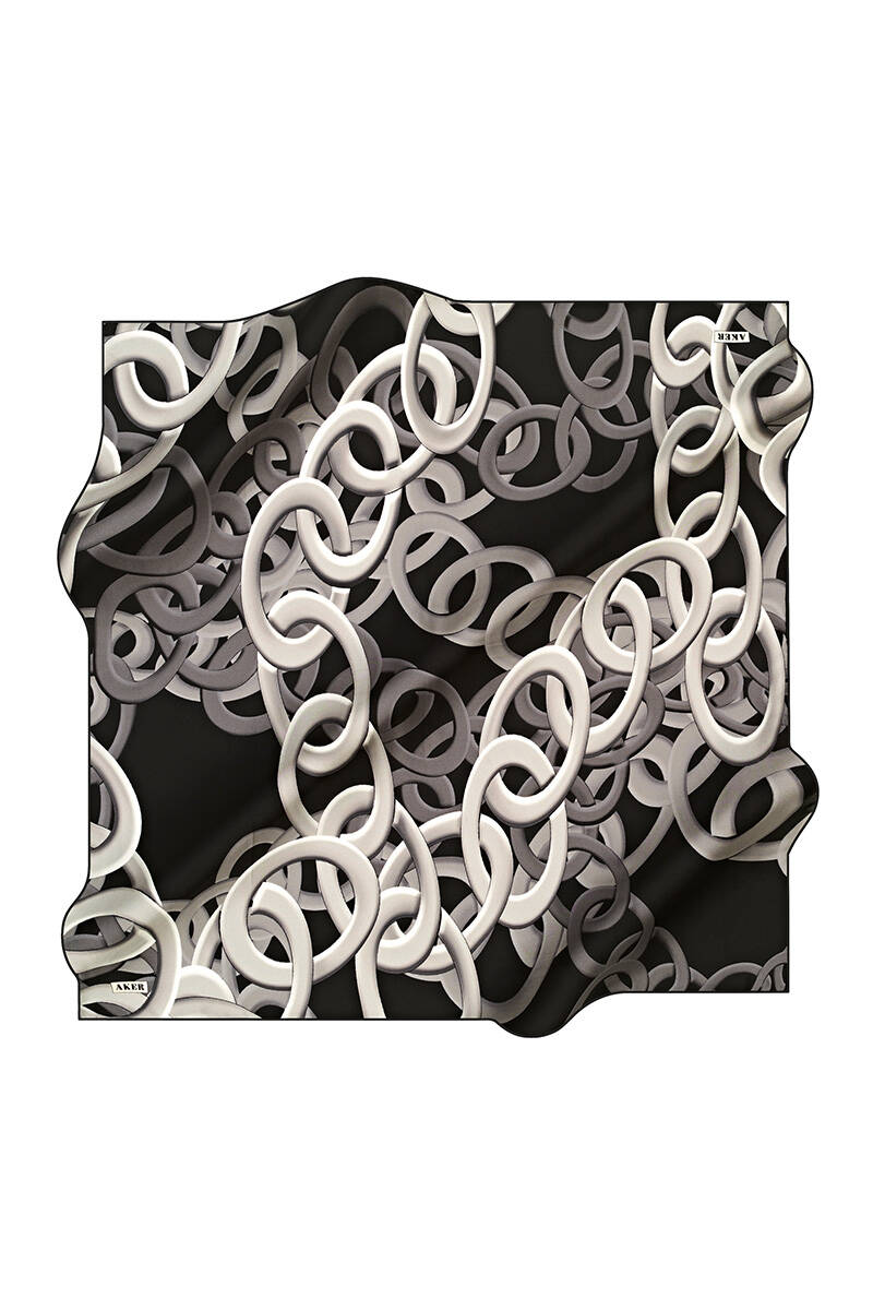 Logo Desenli 90X90 İpek Krep Saten Eşarp