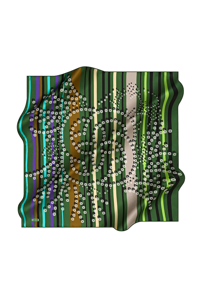 Logo Desenli 90X90 İpek Krep Saten Eşarp