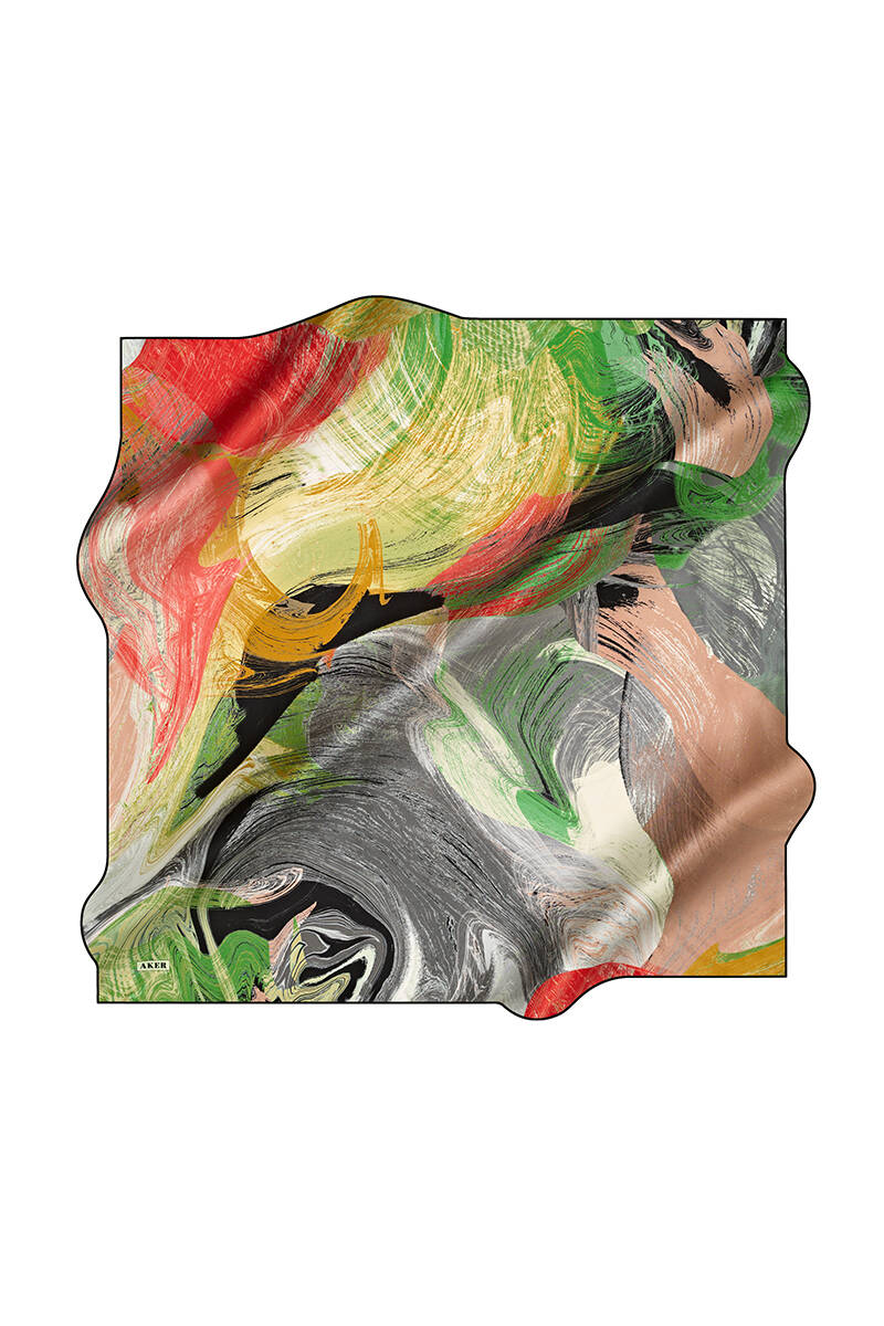 Logo Desenli 90X90 İpek Krep Saten Eşarp