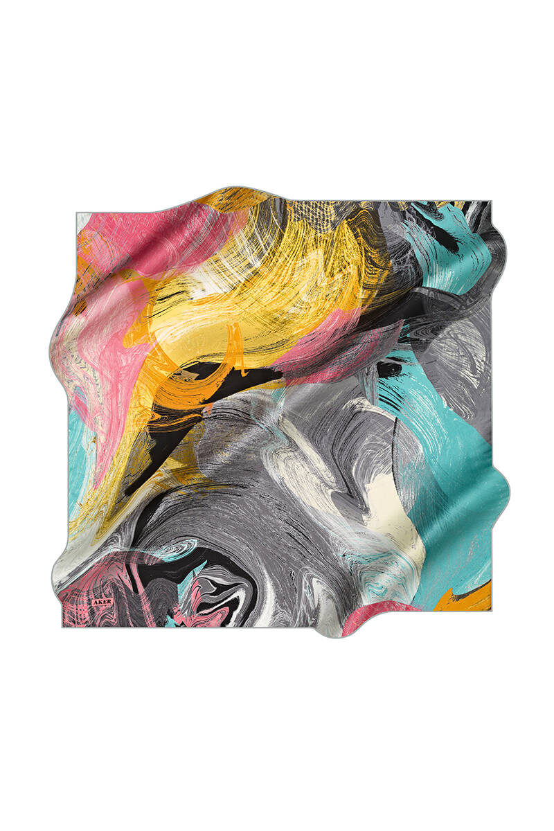 Logo Desenli 90X90 İpek Krep Saten Eşarp