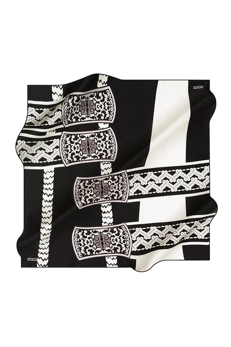 Geometrik Desenli 90X90 İpek Twill Eşarp