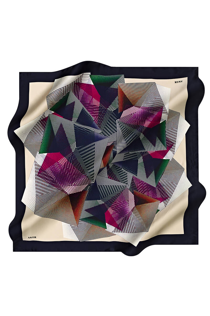 Geometrik Desenli 90X90 İpek Twill Eşarp