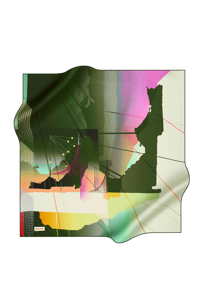 Geometrik Desenli 90X90 Pierre Cardin Krep Saten Eşarp