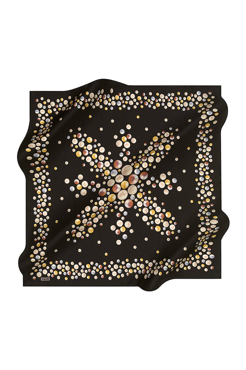 Geometrik Desenli 90X90 Taşlanmış İpek Krep Saten