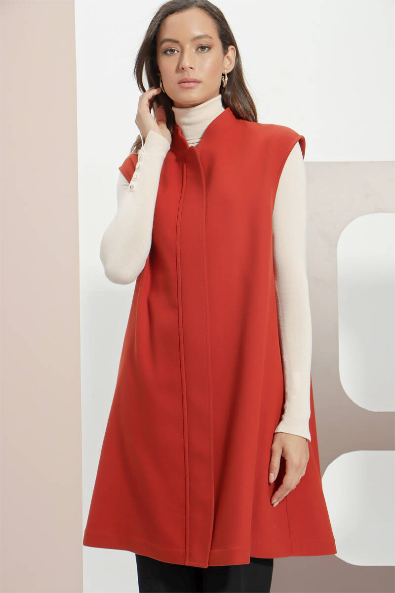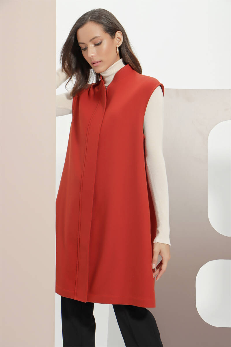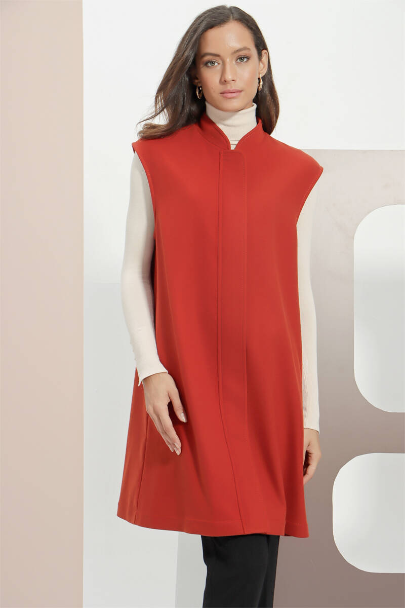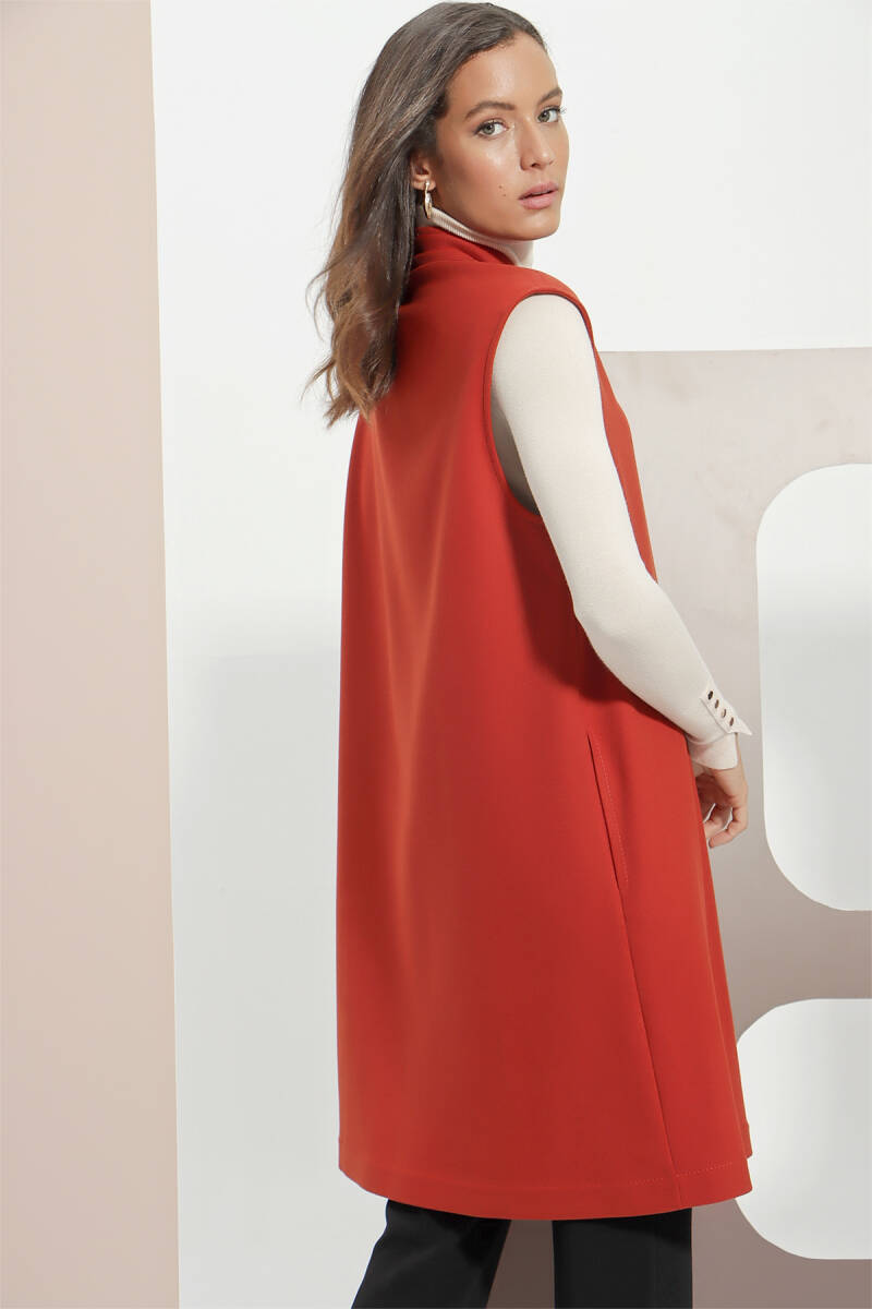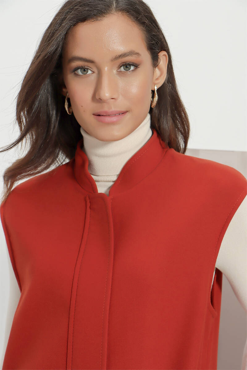 Kiremit Grogren Ve Püskül Detaylı Yelek